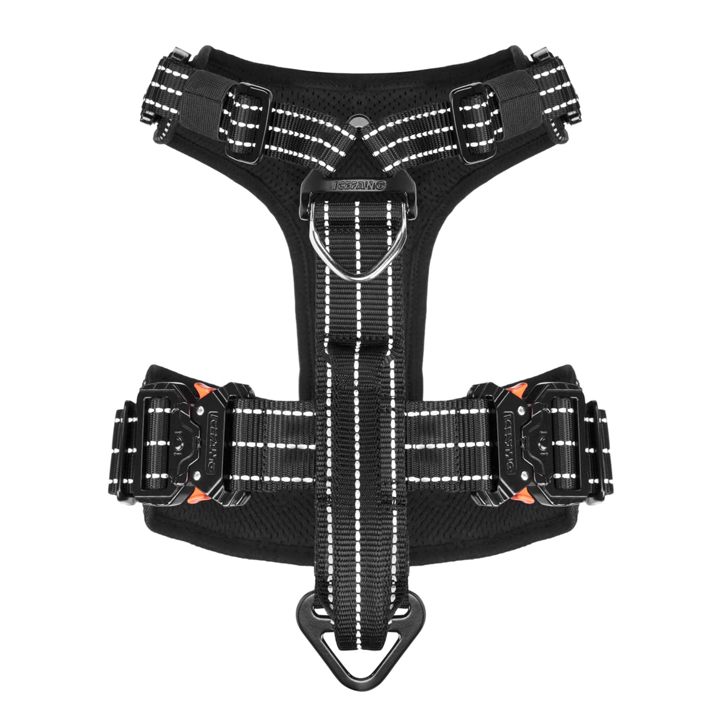 Icefang Dog Strap Harness With 4 X Metal Buckles,For Large Sized Dog,K9 Vest,Y-Shape Chest,Adjustable Pet Harness,No-Pull Front Leash Clip (Large (Pack Of 1), Black)