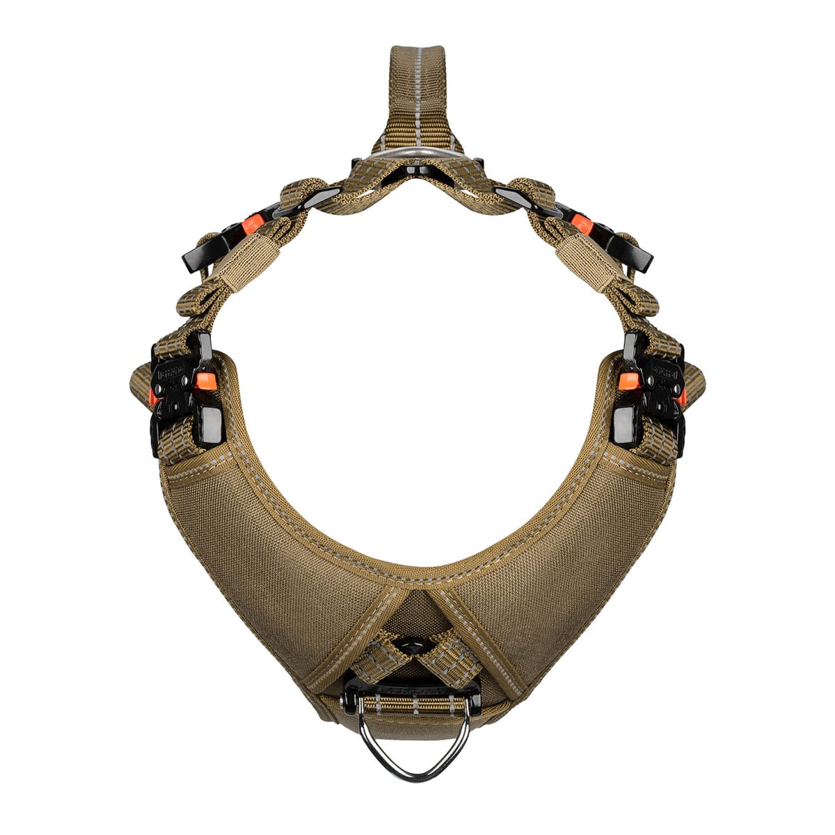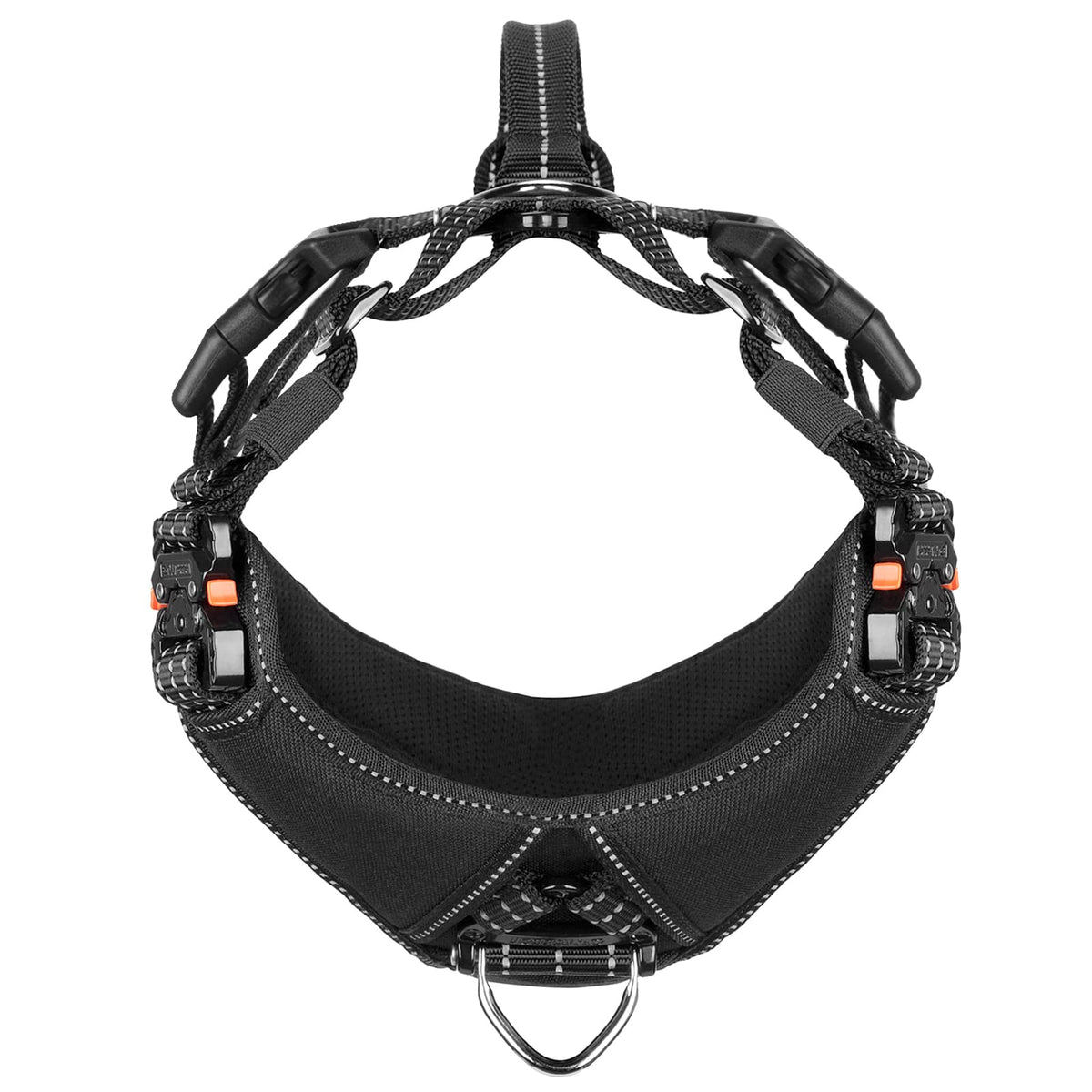 Y Chest plate and Neck opening was designed to keep this harness centered on the dog’s chest. Padded inside Breast plate minimizes pressure on the dogs throat.our sepcial U-groove nylon webbing make the starps hold the adjust slider tight