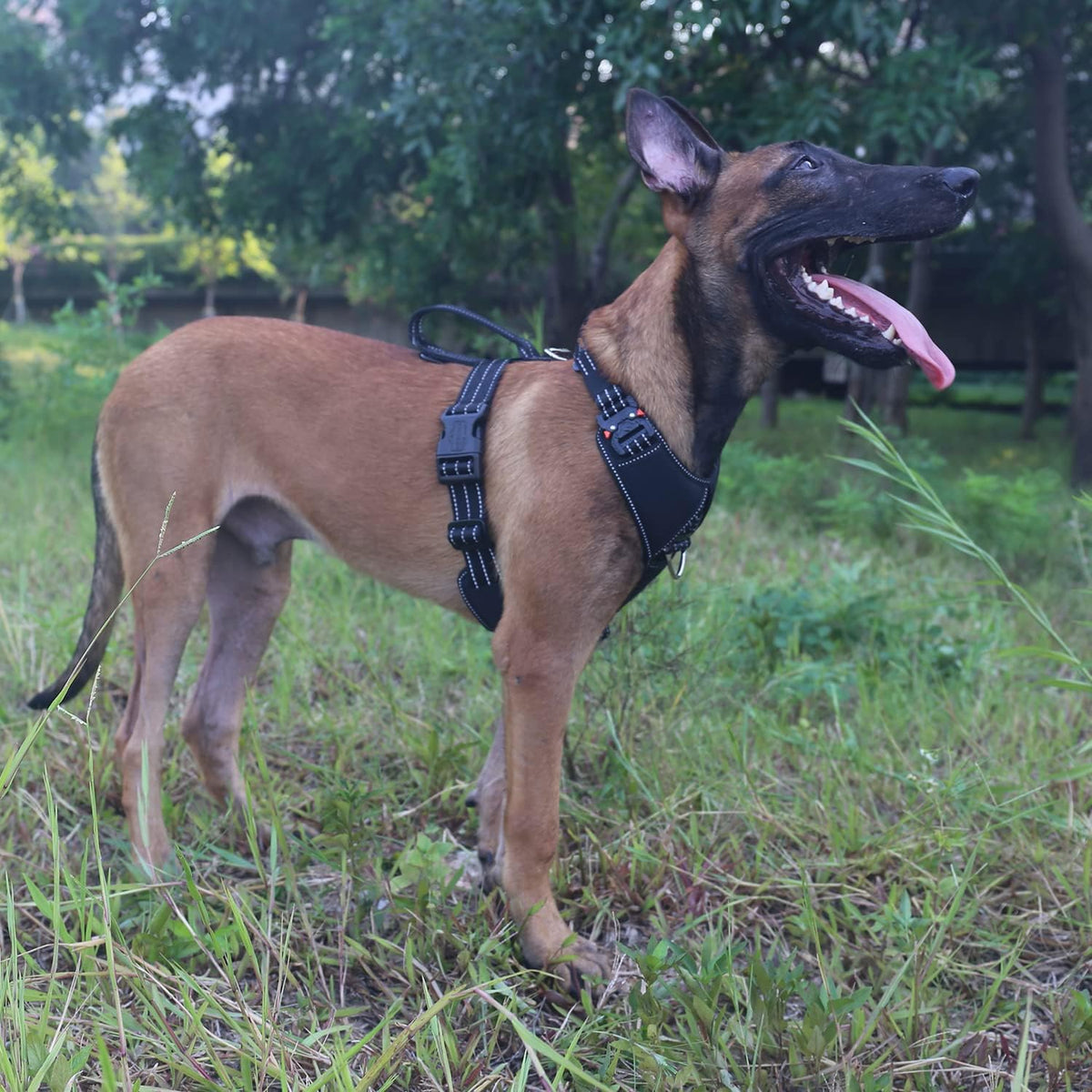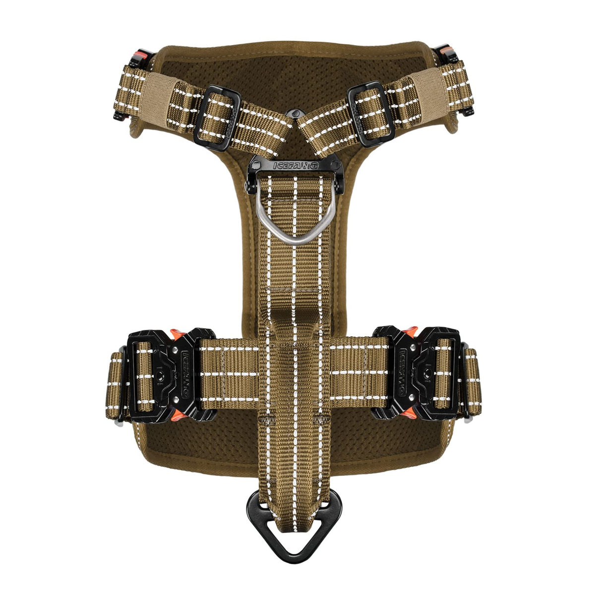 Q: Is the ICEFANG Dog Strap Harness suitable for outdoor activities?A: Yes, this harness is designed with thick nylon webbing and climbing-rated hardware, making it ideal for outdoor activities. The heavy-duty design allows for a greater range of mobility, ensuring your dog is comfortable during walks, hikes, or runs.