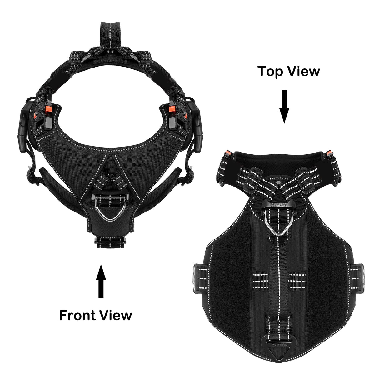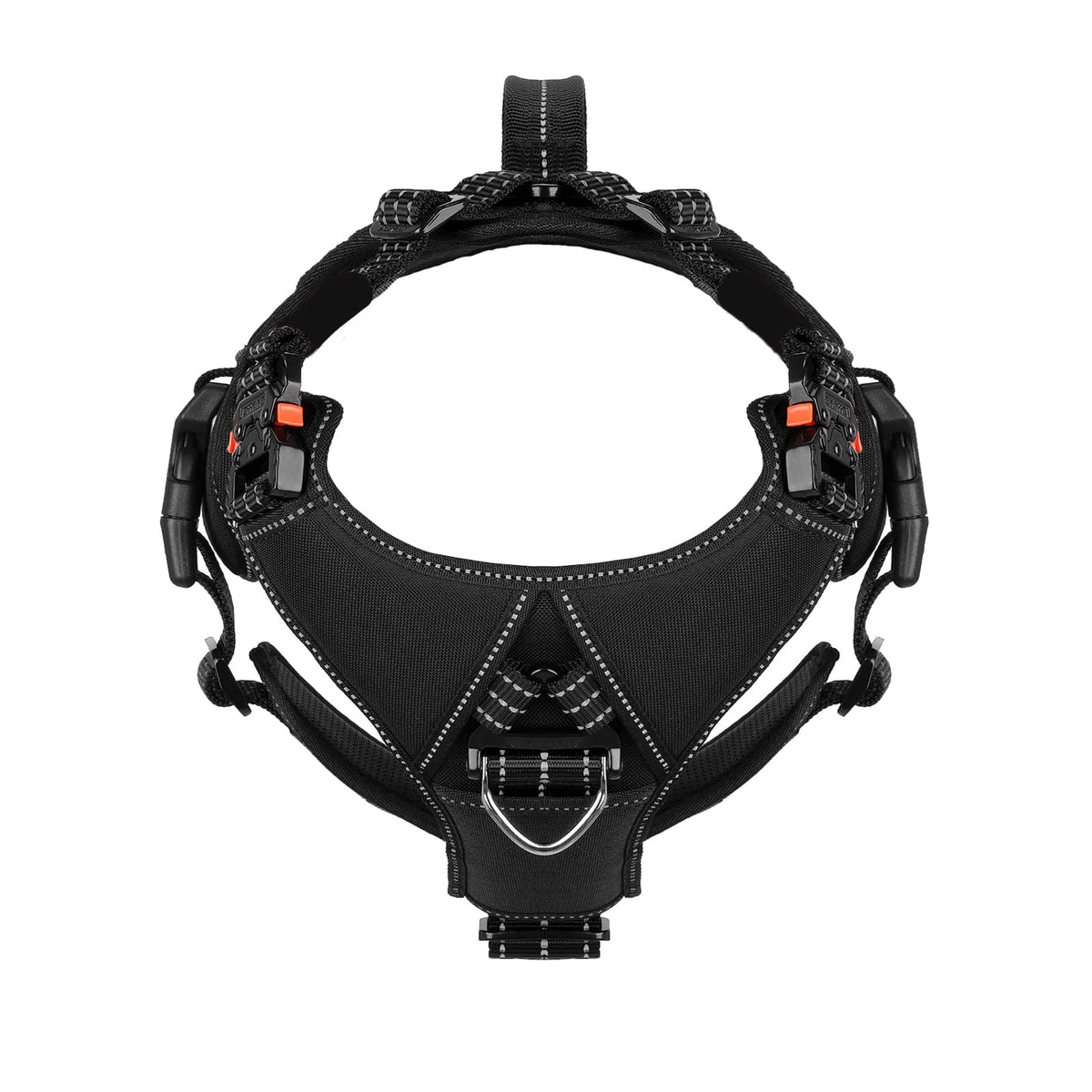 Q: What features make this harness suitable for training my dog?A: The ICEFANG harness features a no-pull front clip, heavy-duty hardware, and a Y chest plate design to minimize pressure on your dog's throat. These features help provide better control during training while ensuring your dog's comfort and mobility.
