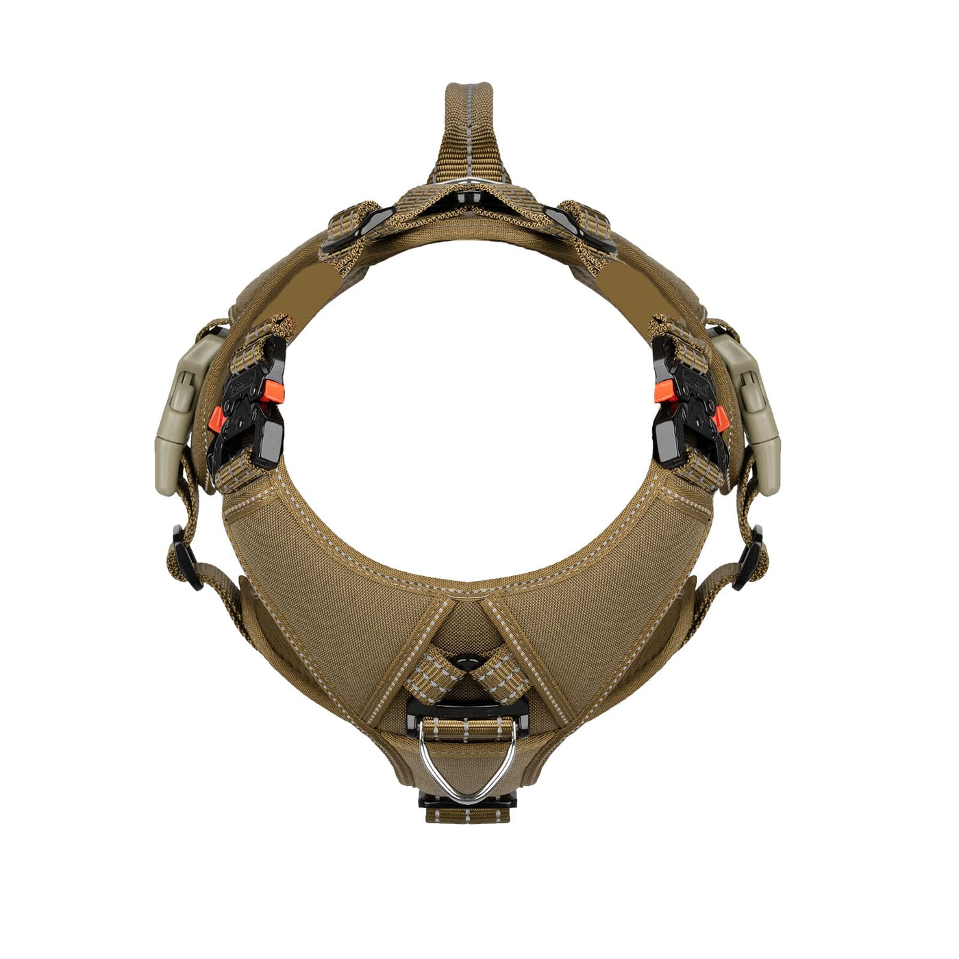 Icefang Gn8 Quick Moving Tactical Dog Harness With Handle ,Reflective In Training Walking K9 Vest,No-Pull Front Lead ,5-Points Adjust , Hook And Loop Panel (L (Neck 18'-24'; Chest 28'-35'),Brown)