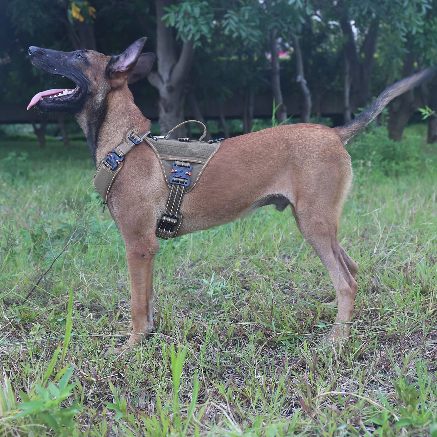 Icefang Gn8 Quick-Moving Tactical Dog Harness With Handle ,Reflective Pet Vest,No-Pull Front Lead ,5-Points Adjustable,Hook And Loop Panel For Patch (Large (Pack Of 1), Elite Brown)