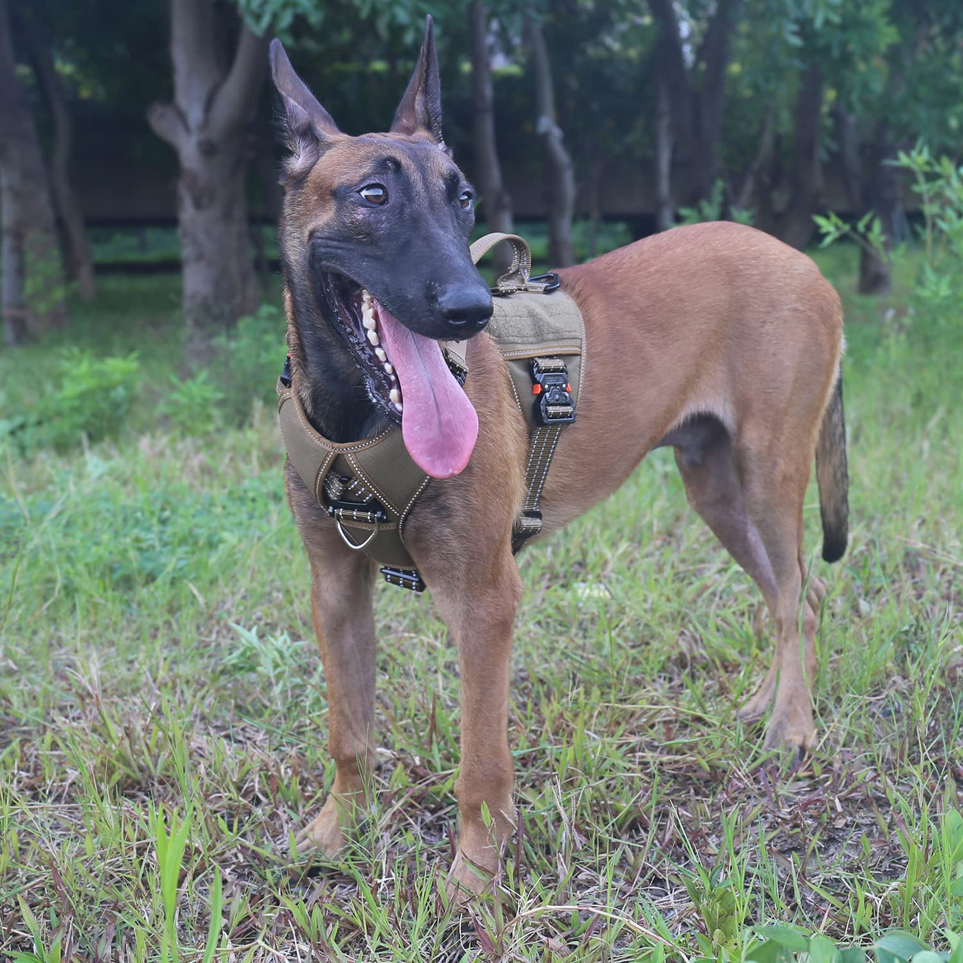 Q: What features make this harness comfortable for my dog?A: The harness features a Y-shaped chest plate and neck opening, providing a snug fit that minimizes pressure on your dog's throat. The padded inside breast plate ensures comfort, while the adjustable straps allow for a tailored fit, promoting ease of movement during activities.