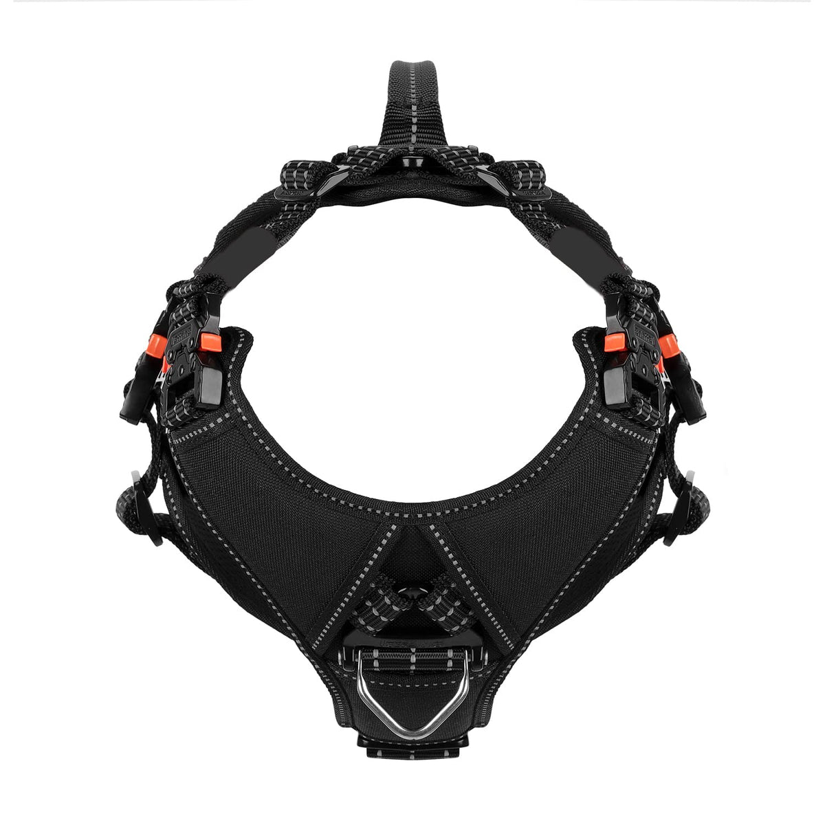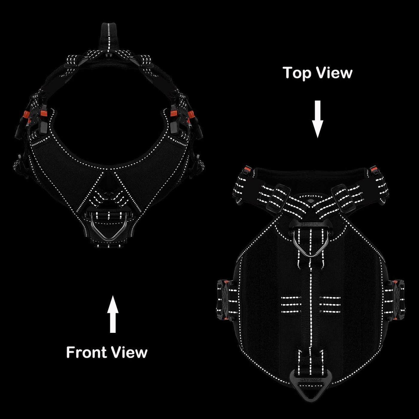 Feature: [Flexible And Mobility]:This Design With Maxium-Cut Behind Of Dog 'S Foreleg And Armpit ,Offer Best Mobility When Our Dog Runing ,Walking ,Training Or Other Sport Activity [Heavy Duty Hardware]: Climbing Rated Triangle Hardware And Integrated Metal Rotation V-Ring On Front And Back ,Directly Connect Both Triangle Hardware With Our Thicker Nylon Strap ,Make Sure The Pull Force Is Evenly Distributed On Metal Hardware Instead Of Fabric And Stitch Y Chest Plate And Neck Opening Was Designed To Keep This Harness Centered On The Dogs Chest. Padded Inside Breast Plate Minimizes Pressure On The Dogs Throat.Our Sepcial U-Groove Nylon Webbing Make The Starps Hold The Adjust Slider Tight Harness Was Designed By Putting 3 Individual Components Together ,Sewing On Long Enough Strap ,Offer 5 Adjustment Points ,Please Adjust The Vest Around The Dog 'S Body , And Secure By Quicke Release Buckle;Cut The Exceed Strap,Burn And Solidified The End Of Strap If Necessary ,Make Sure This Harness Is Snug Fit To Your Dog. Tips:1:This Is Not To Be Used With A Tie Out; 2:Please Refer To Our Size Chart,Make Sure Match Up Your Dog 'S Lower Neck ( C: Right Above Their Shoulders) And Chest Measurements( A:The Widest Part Of The Chest); Do Not Choose The Size Base On Dog 'S Weight Or Guess