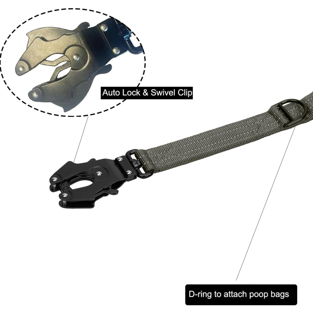This Leash Allows You To Keep Your Furry Buddy Close To Your Side Without Having To Bunch Up The Leash Or Looking For A Second Handle Down Along The Longer Leash Leash Is Soft Padded And Comfortable In You Hand, Protect Your Hands From Rope Burn Clip Is Designed For Quick Release And Lock. It Will Be Automatically Fastened When Touch The D-Ring On Harness Or Collar .Press Two Snaps On The Sides Of The Clip To Open It The 2-Lines Reflective Stitch Threads On Both Sides Through The Whole Leash , Allows Your Dog To Be Seen At Night Metal D-Ring Near The Handle To Attach Dog Poop Bags ,Training Clicker