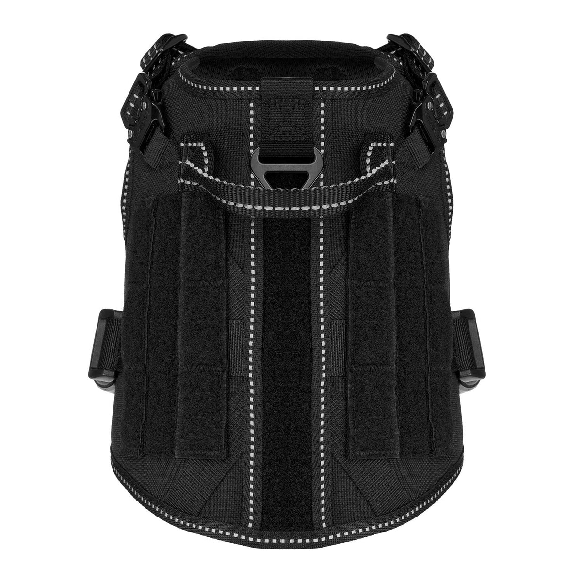 Icefang Work Close With Dog Trainer/ Handler/Offices/Dog Lovers/Pet Vet Clinic And Pet Stores .So That We Know How To Best Meet Our Customers' Needs , We Offer Every New Product To Them For Test Before Production, Make Sure Our Design Item Is Practical To Our Customer Material: 1050D Nylon With Pu Water Resistant Coating Soft Padded Ventilate Mesh Alloy Metal Hardware Abs Plastic Accessories 100% Nylon Webbing,Thread Feature: We Update Buckle To Alloy Metal Buckle (1000 Lb Proof-Load Test ) On Dog Shoulder Position Which The Most Load Bearing Point When Dog Pulling, Stitching By Bartack And X In Box Pattern On Each Joint And Load Bearing Point , Dog Will Not Broken / Snap Off The Harness Harness Was Designed By Putting 2 Individual Components Together ,Offer 4 Position Adjustable ( Shoulder ,Chest ),Easy And Free Adjust In Properly, Make Sure This Harness Is Fit Well To Your Dog,No Rub As Well As Escape-Proof Durable Handle Is Sewn Tough And Large Enough To Grab The Harness Quickly And Easily When Walking In Crowd ,Also Lift Your Dog When Getting In/Out Of The Car Double Leash Clip D-Ring ,One Sewn On The Back Near The Dog Neck For Normal Walking .Another Sewon The Front Chest For No Pull Molle/Pals Carrying --Two 1'' Strips Of Molle Sewn Onto Both Side,Allow Your Dog To Carry Gear By Pals/Molle Pouch In Training / Daily Walking/Adventure Hiking,Also Support Hook By D-Ring Hook And Loop Panel For Dog Patch ---Three 1'' Strips Of Loop Panel Sewn Onto Both In The Formation Of Molle; One Strip Of Loop Panel Sewn Along The Back Of Harness; One Square Loop Panel Sewn On The Front Chest ,You Can Attach Many Patch To Identify Your Dog