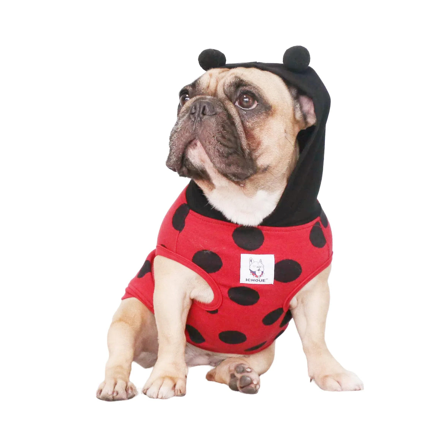 Ichoue Ladybug Ladybird Lady Beetle English Bulldog Halloween Costumes Hoodies Sleeveless Clothes Outfits Funny Cosplay Shirts For Medium Dogs French Frenchie Pug Boston - Black And Red, X-Large