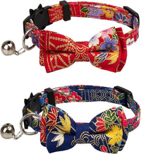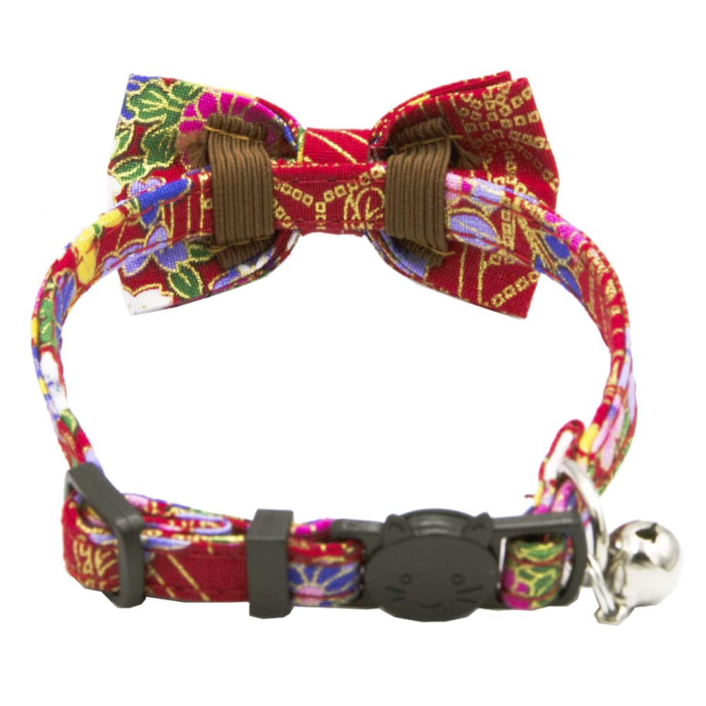 Icicecream Breakaway Cat Collar With Bow Tie And Bell, Japanese Kimono Patterns, Detachable Adjustable Safety Collars For Girl B