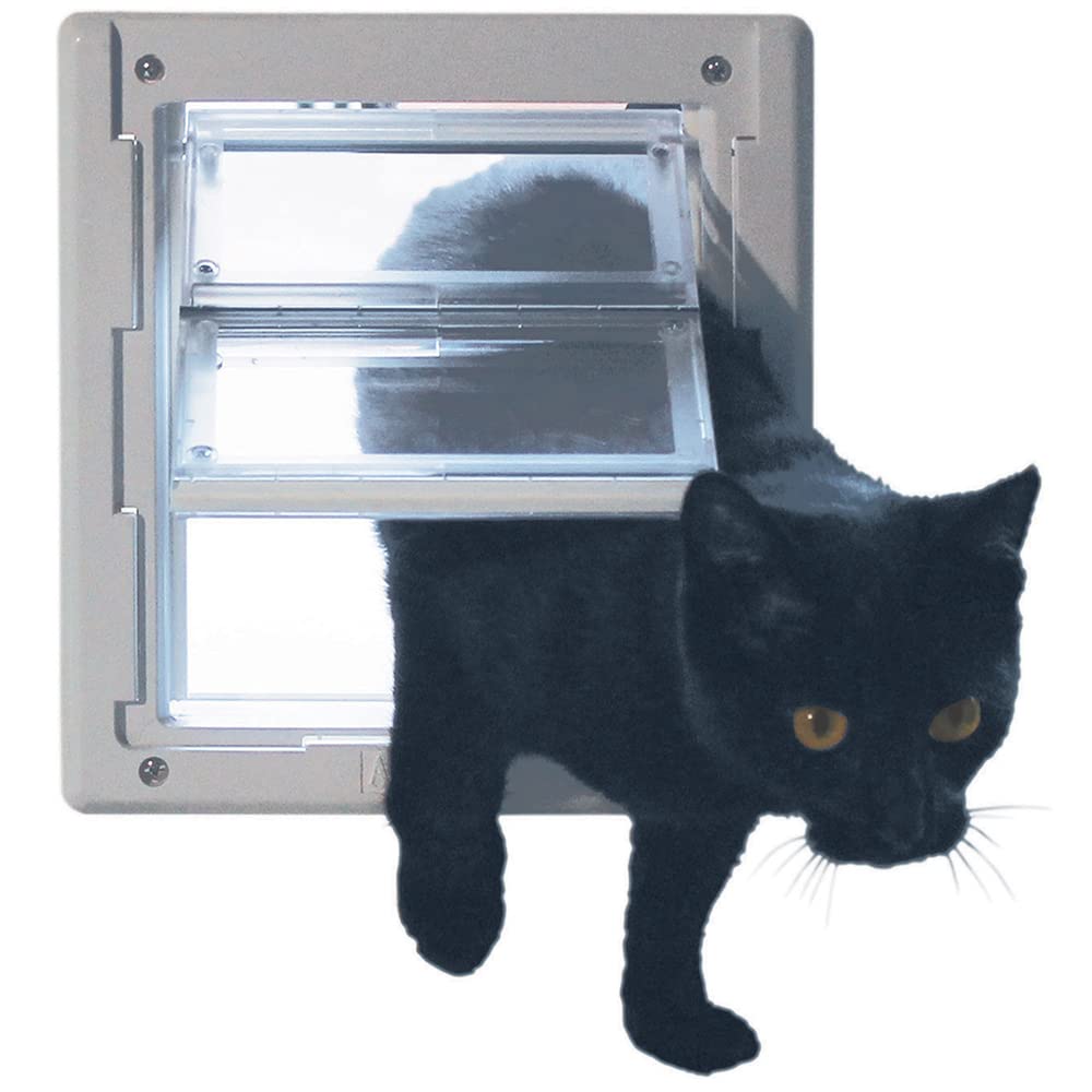Q: What materials are used in the construction of this pet door?A: This pet door features transparent, unbreakable dual pane panels made from LEXAN® hard panels and ABS thermoplastic for maximum thermal protection and durability.