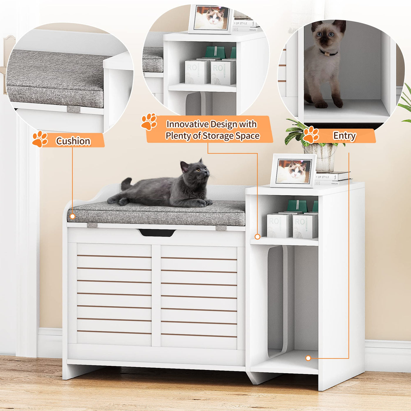 Idealhouse Litter Box Enclosure With Top Opening With Cushion, Cat Litter Box Furniture Hidden, Litter Box Hidden, Cat House, Pr
