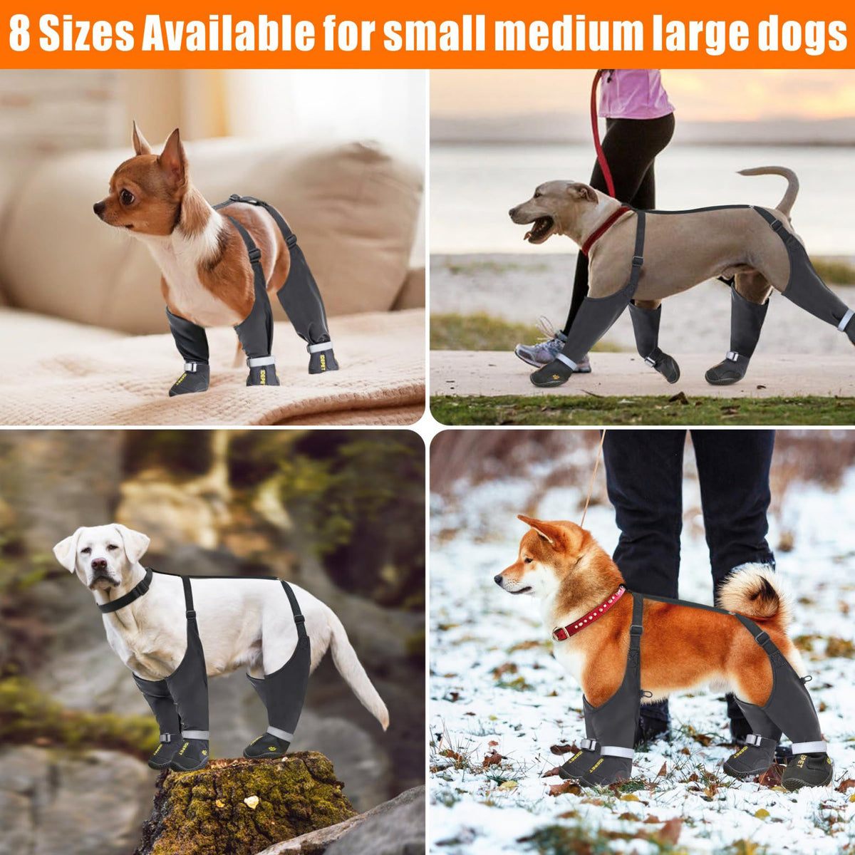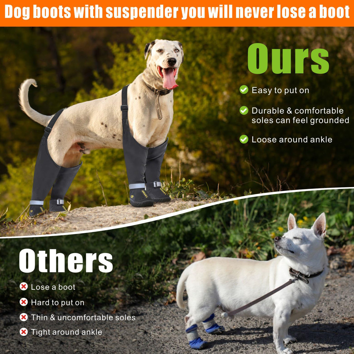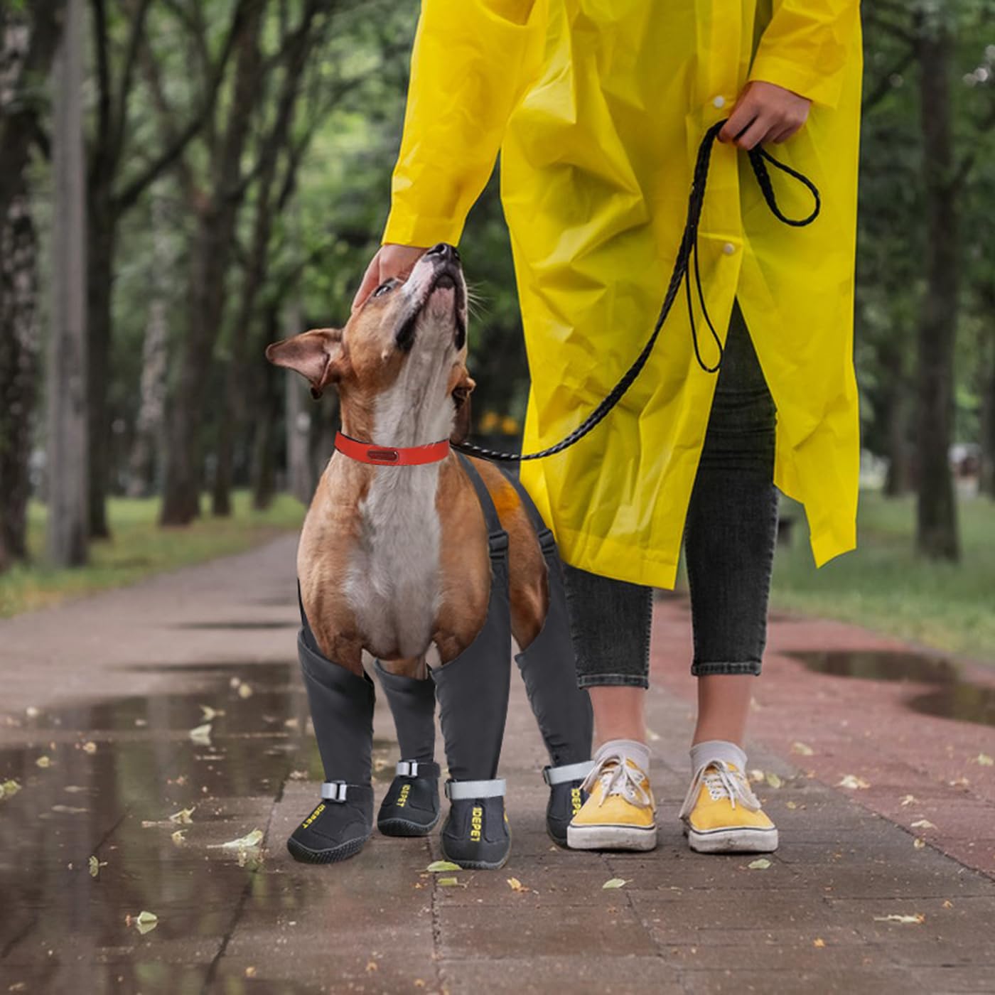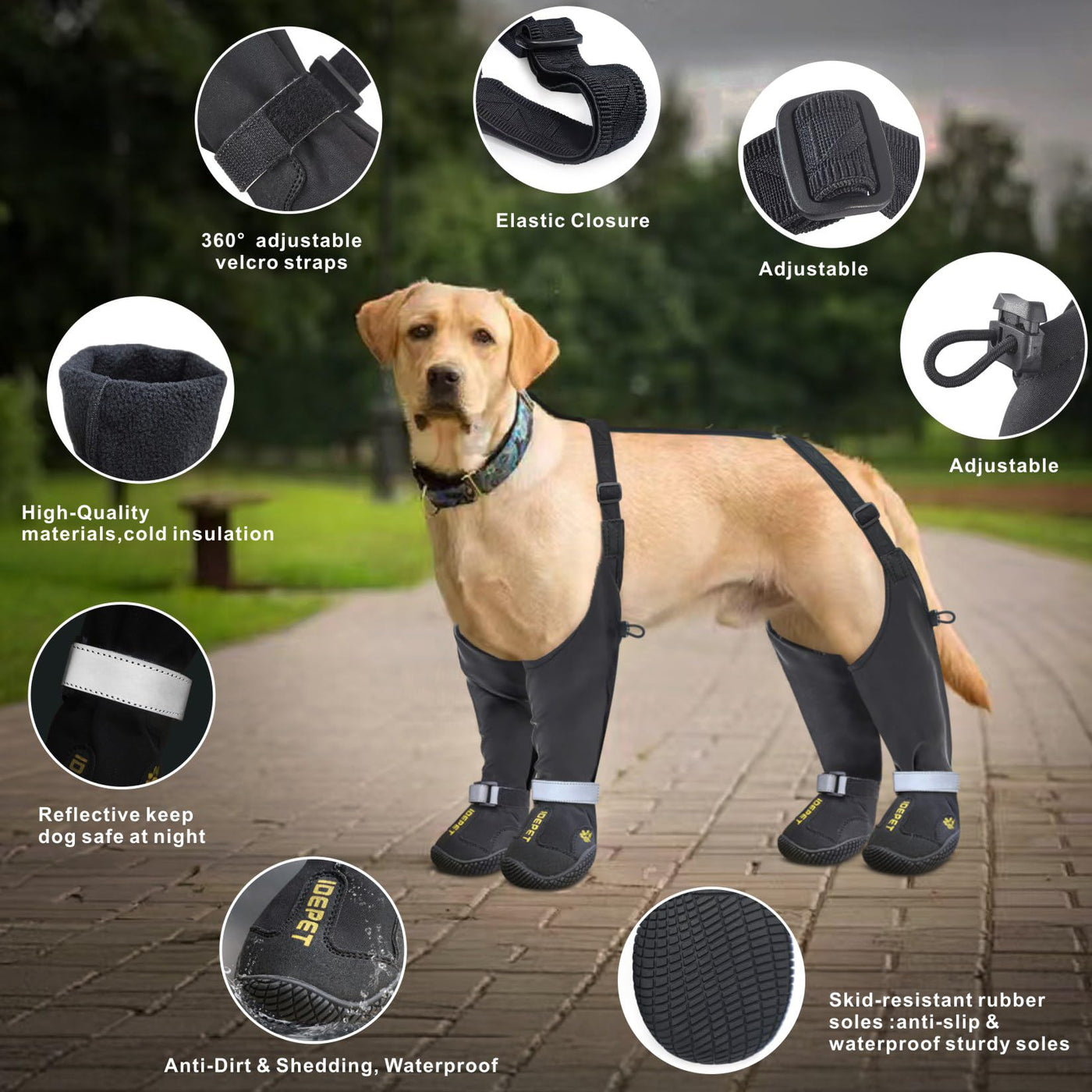 Idepet Dog Suspender Boots, Anti-Slip & Fall Waterproof Tall Dog Shoes Boots Legging for Small Medium Dog, Adjustable Suspender