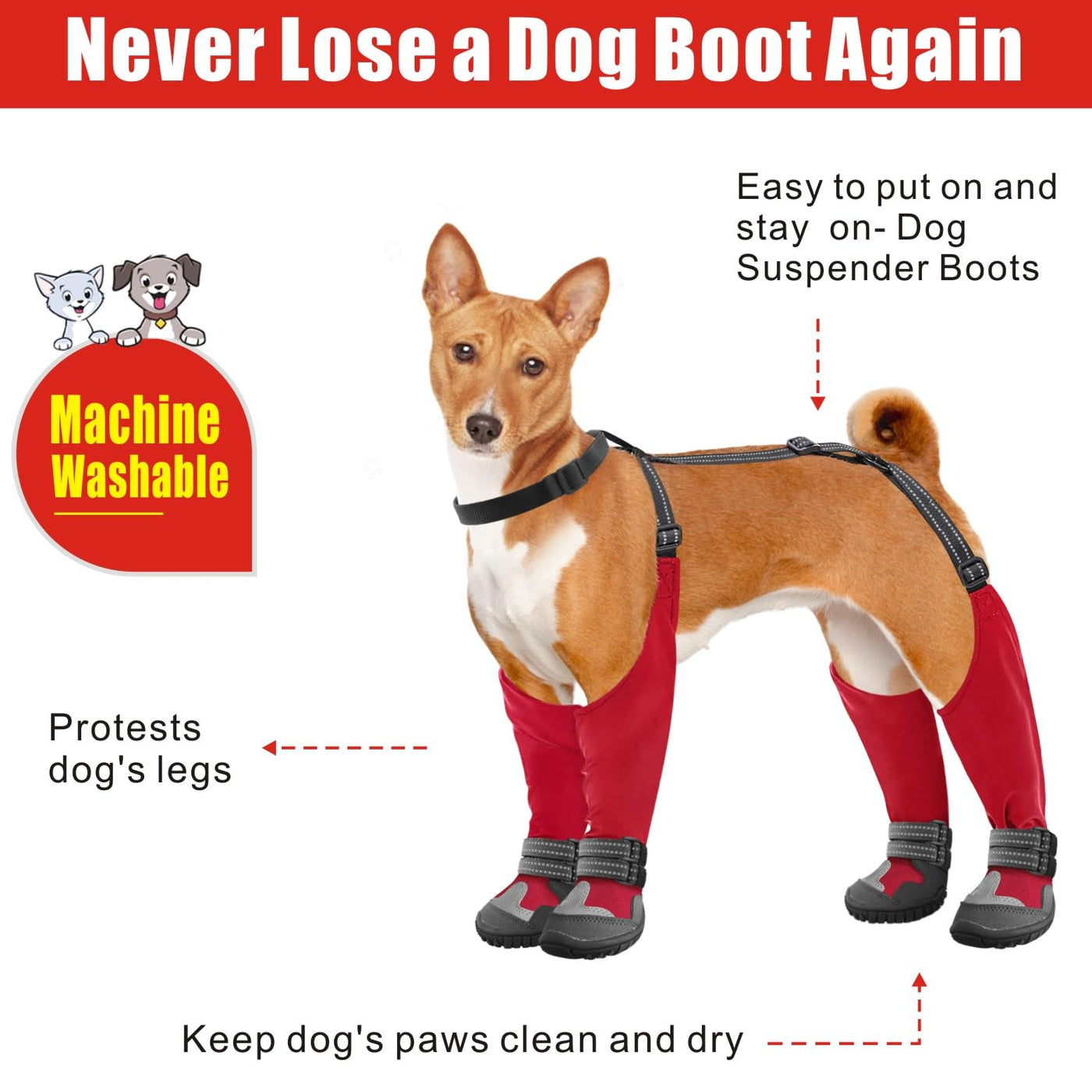 This newly designed suspender boots for dogs are 360 degree adjustable, provide offer complete protection that won't fall off. 45 degree bend design fits your dog's paws with a comfortable wearing experience. Dog shoes leggings secure comfortably over your dog's back and don't squeeze around their ankles, this dog shoes small size dogs will be the best choice for your dog.