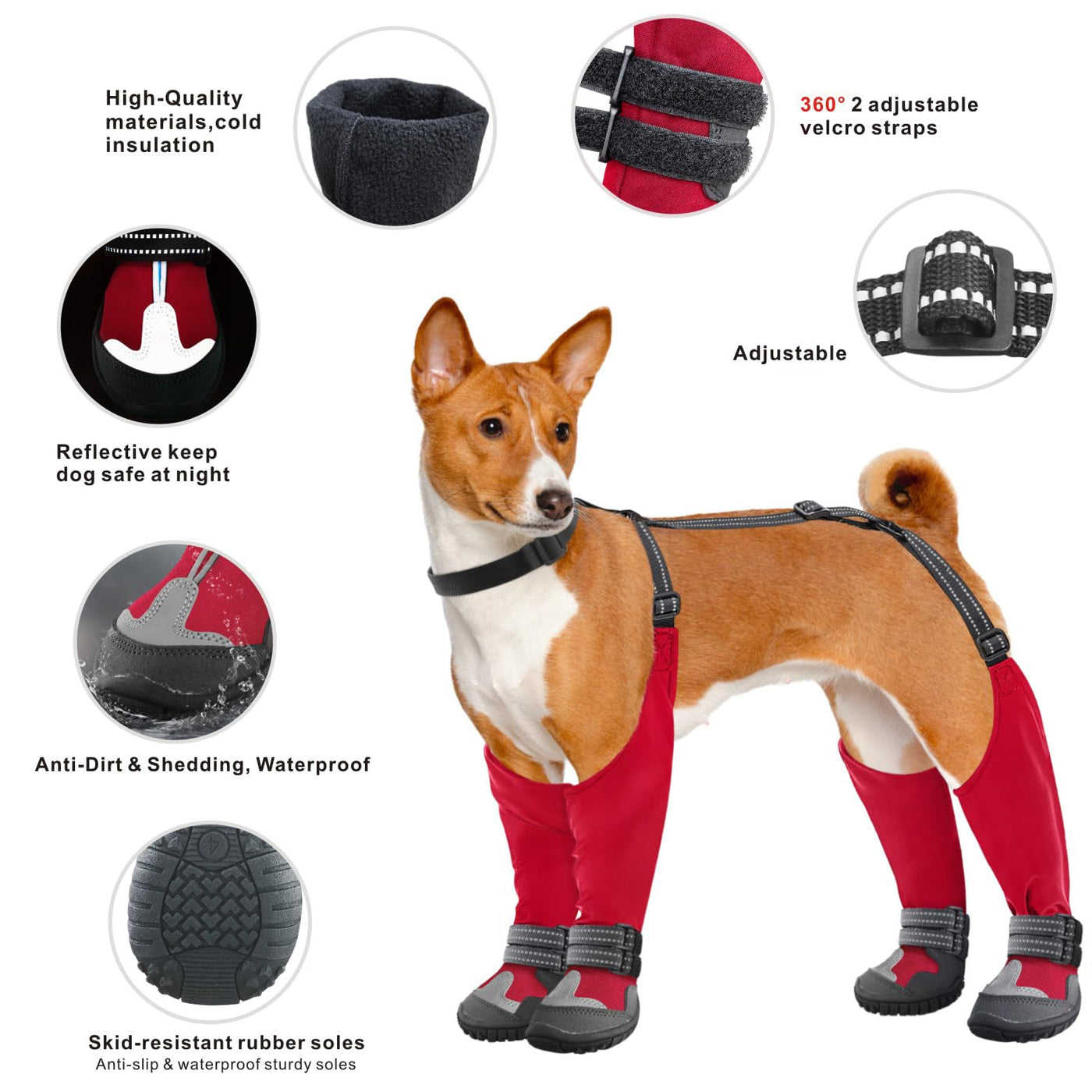 Idepet Dog Suspender Boots - Anti-Slip Waterproof Shoes for Winter, Snow, Rain, Hiking - Adjustable Tall Leggings Paws Protector