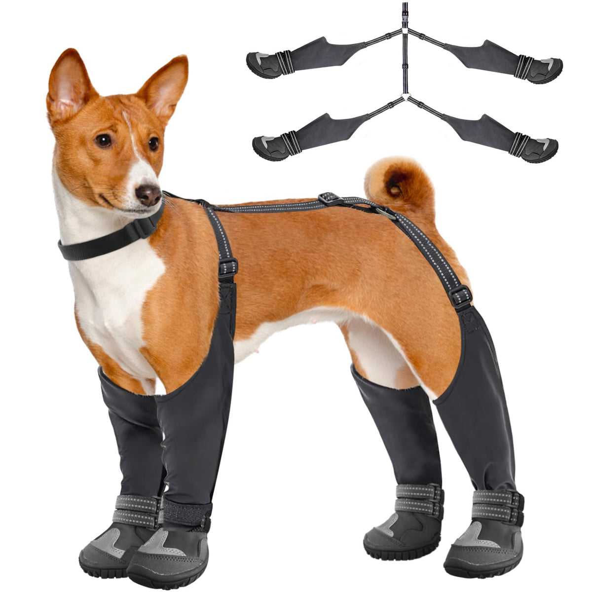 Idepet Dog Suspender Boots - Anti-Slip Waterproof Shoes for Winter Snow Rain Hiking - Adjustable Tall Leggings Paws Protector (B