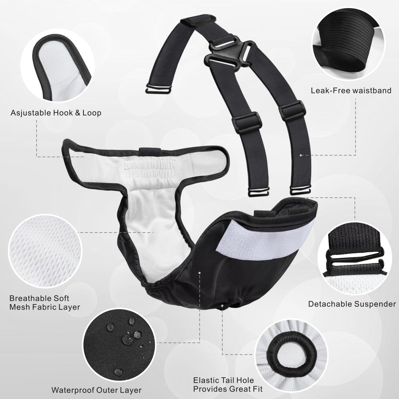 High-Quality Material: With sewn-in super absorbent pads mesh inner layers and waterproof leakproof outer layer prevent leaking and possible damage to rugs carpets sofas and so on. The reusable diapers for dogs female are machine-washable and hand wash also with comfy fast-dry inner lining; easy to clean and dry. Washable & reusable dog diapers are environmentally friendly and economical.