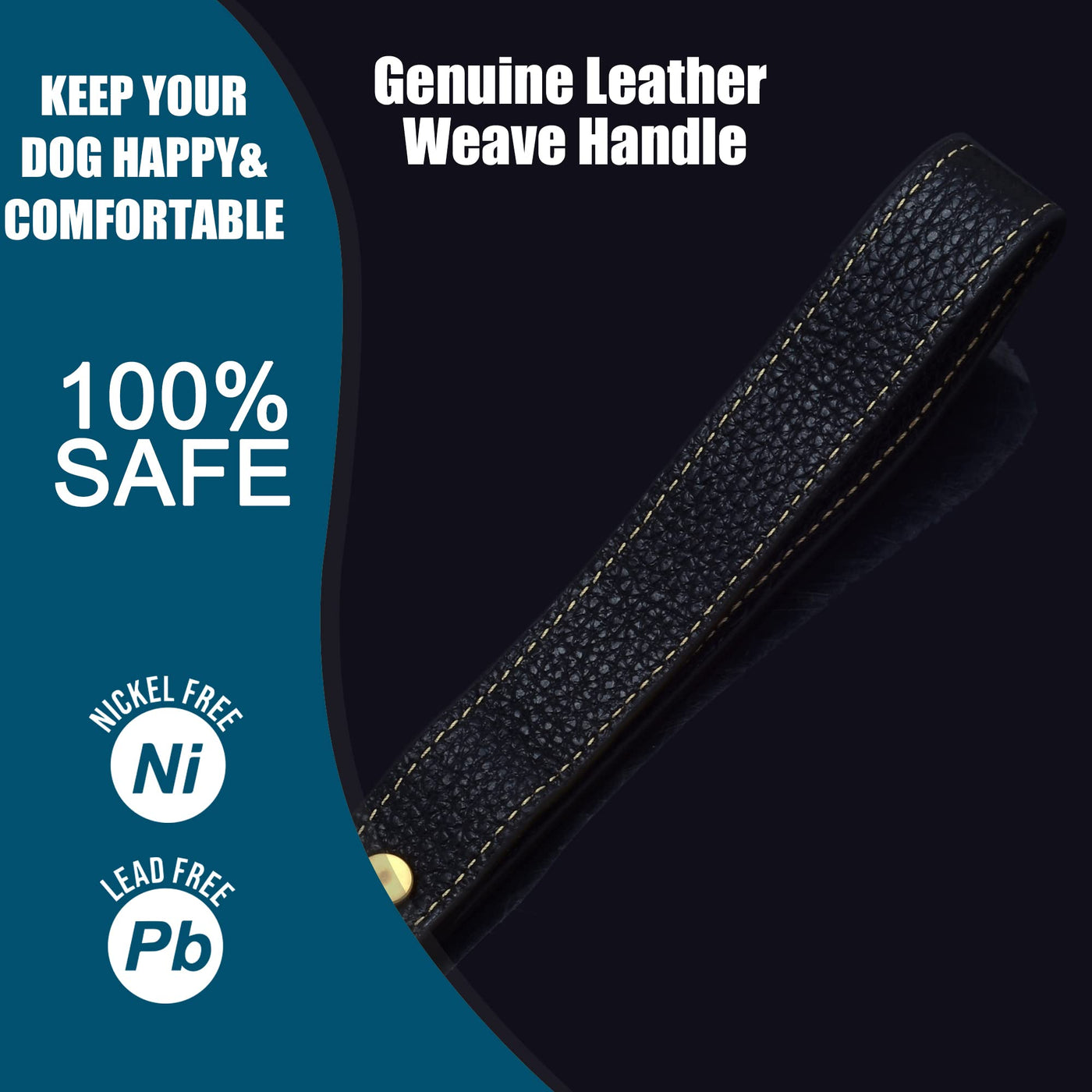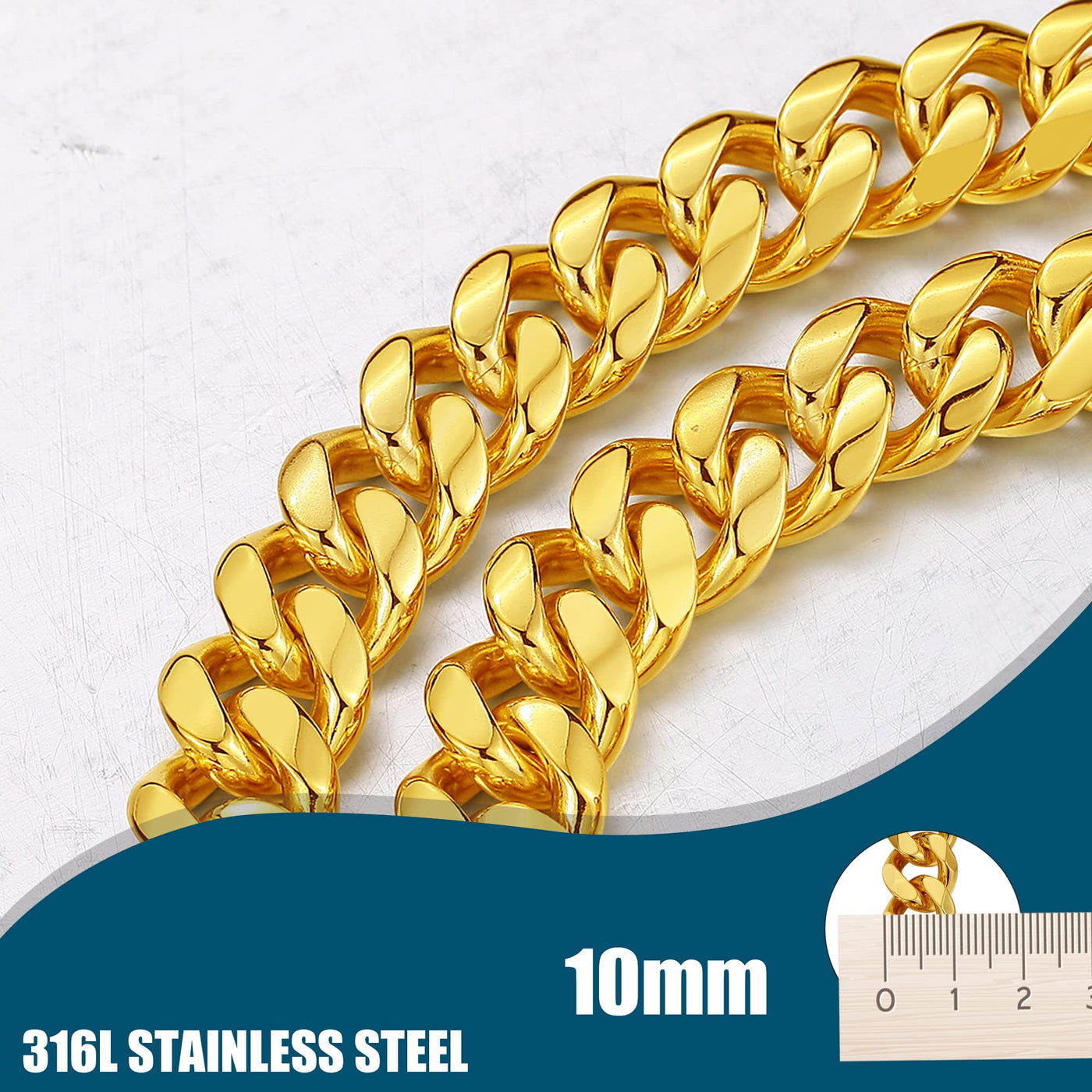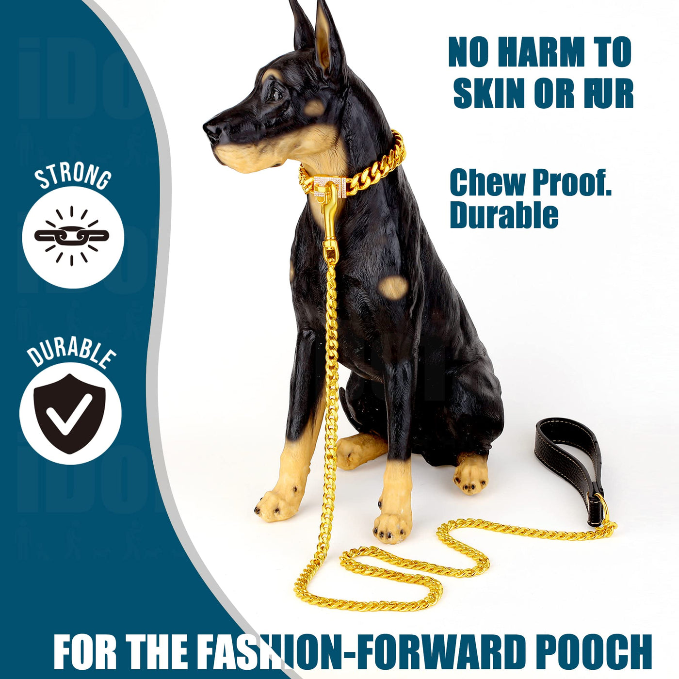 Idofas Gold Dog Chain Leash 18K Gold Stainless Steel Cuban Link Dog Leash With Leather Handle For Dogs Collar Chains(3Ft)