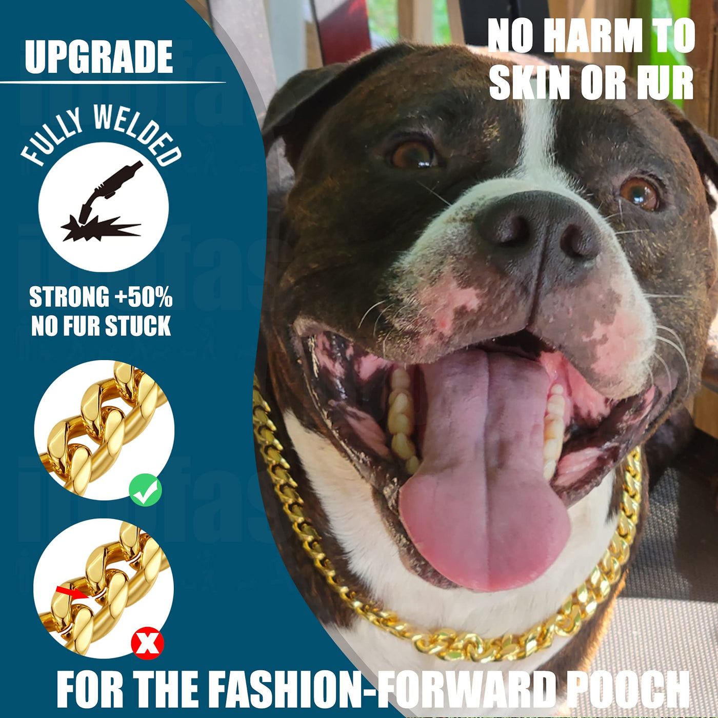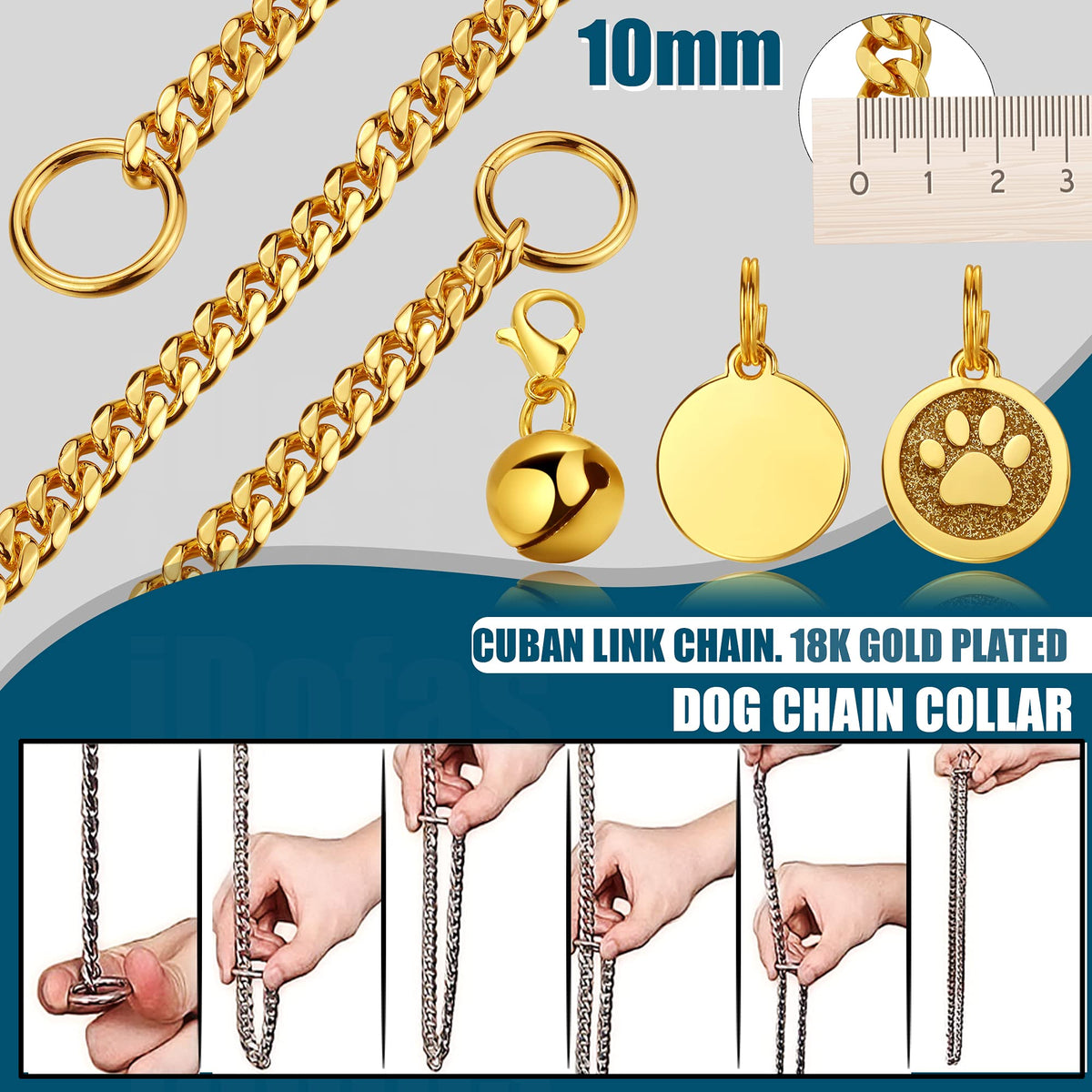Idofas Gold Dog Collar 10Mm Slip Collar Gold Cuban Link Dog Chain Collars Stainless Steel Heavy Duty Gold Collar For Dogs.(10)