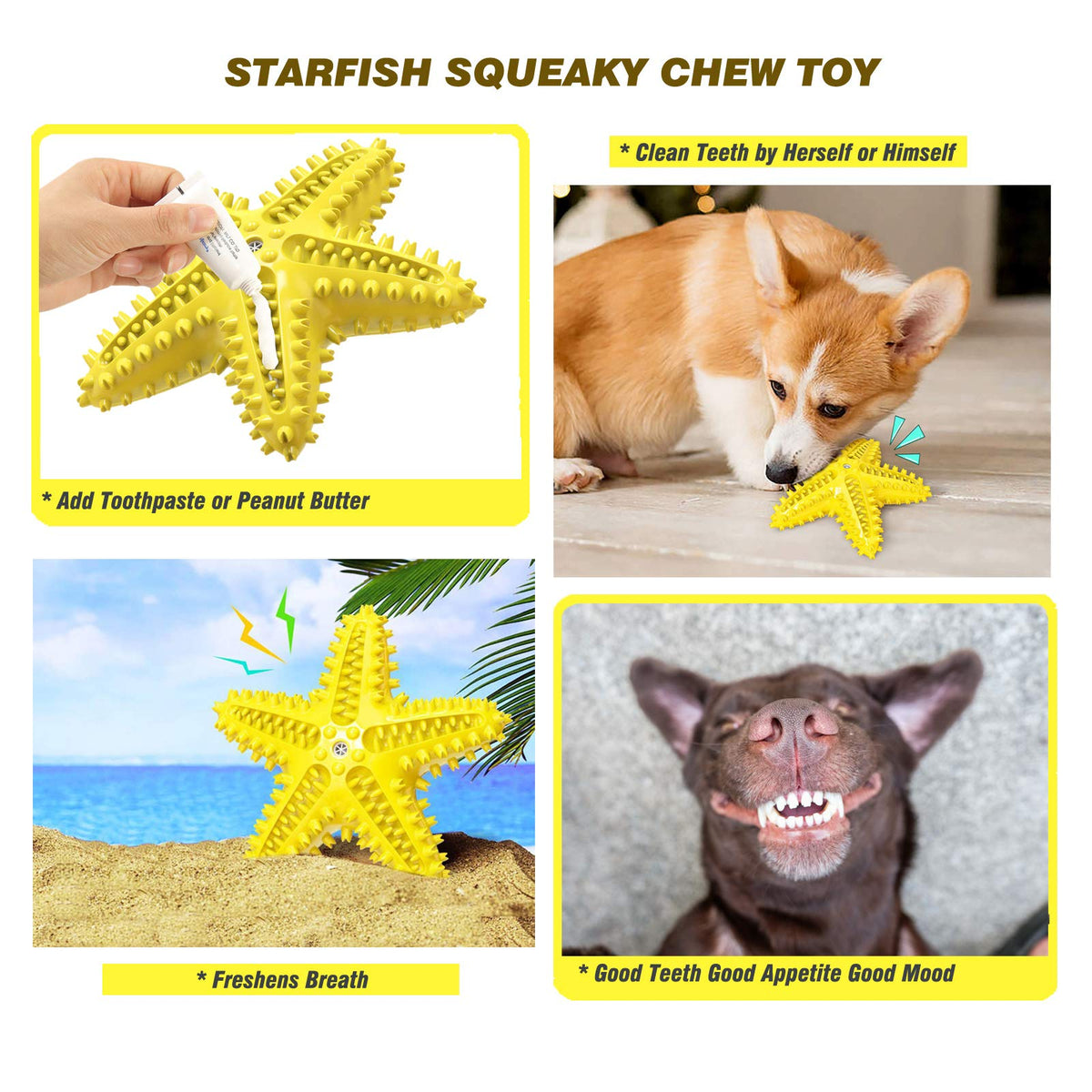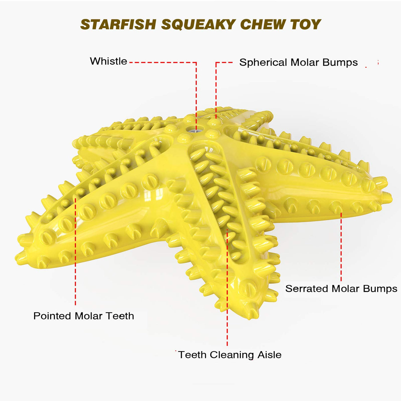 Idolpet Squeaky Dog Toys - Starfish Natural Teeth Cleaning Toy For Small & Medium Dogs - Yellow