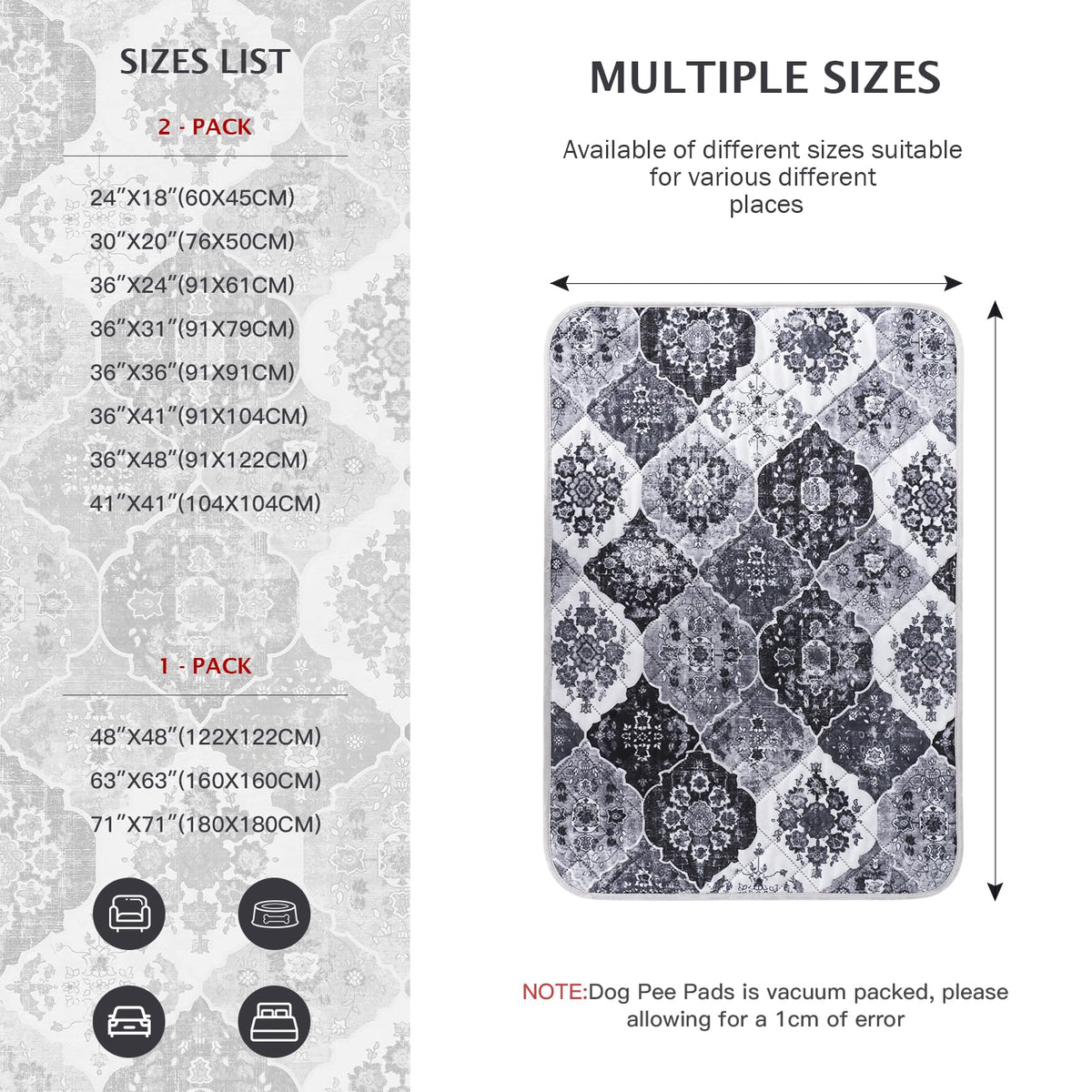 The Ieuumler Washable Pee Training Pads Can Meet The Needs Of Most Dogs! The Reusable Puppy Pads Made Of Multi-Layer Materials Have A Strong Absorption Of Liquid And Can Be Kept Dry All Night. Ideal For Ultimate Protection Of Floors, Dogs Playpen, Carpets, Beds, Furniture, Sofas, And Car Seats. The Comfortable And Soft Fabric With Anti-Skid Bottom Can Protect Your Beloved Dog From Sliding Or Mat Movement As Much As Possible. 2 Pack Of Whelping Pads Are Used Alternately, Which Is Environmentally Friendly And Easy To Clean. With A Variety Of Sizes And Colors, The Dog Washable Pee Pads Can Also Be A Good Decoration For Your Room.