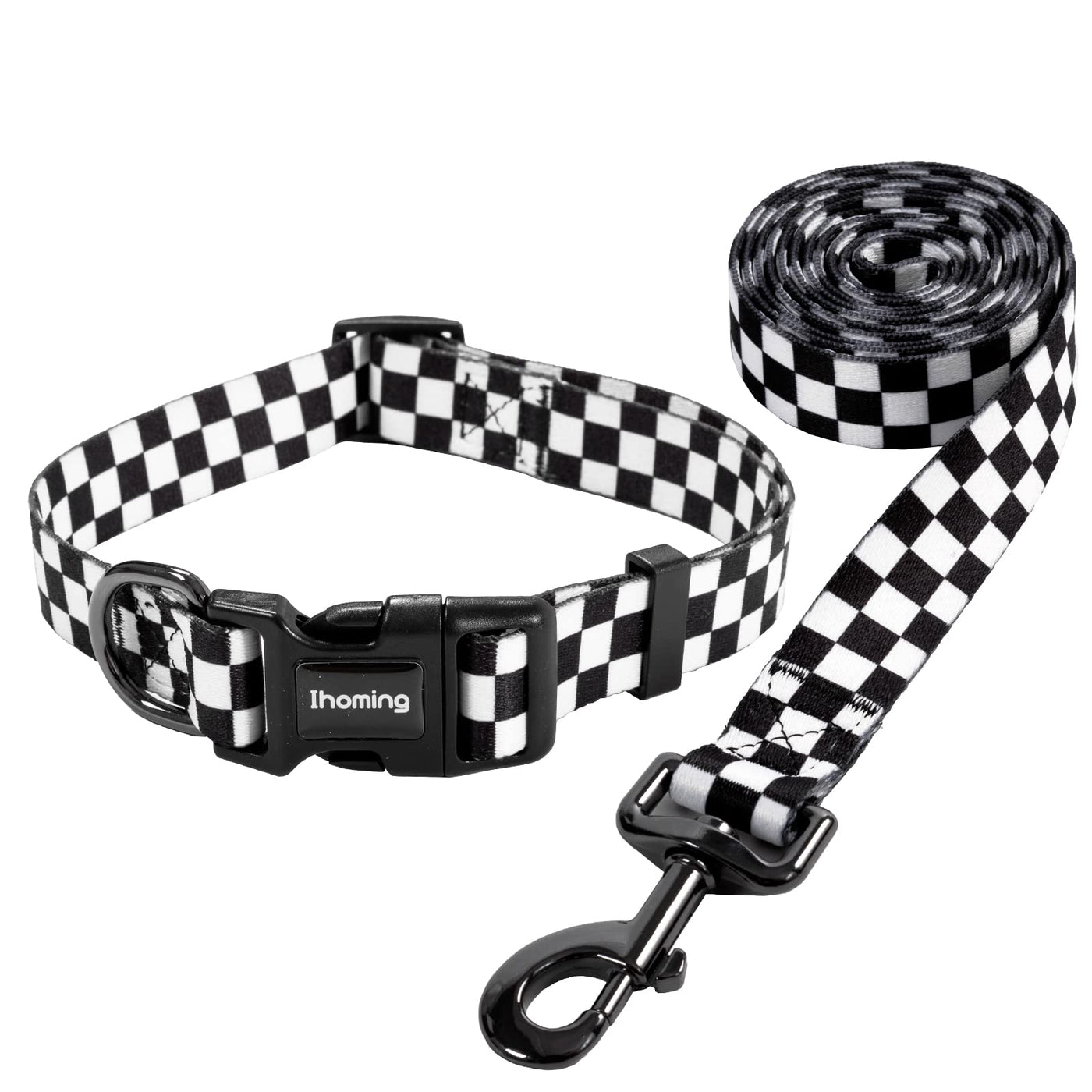 Ihoming Dog Collar And Leash Set For Daily Outdoor Walking Running Training, Chess Board Design For Large Boys Girls Dogs Cats P