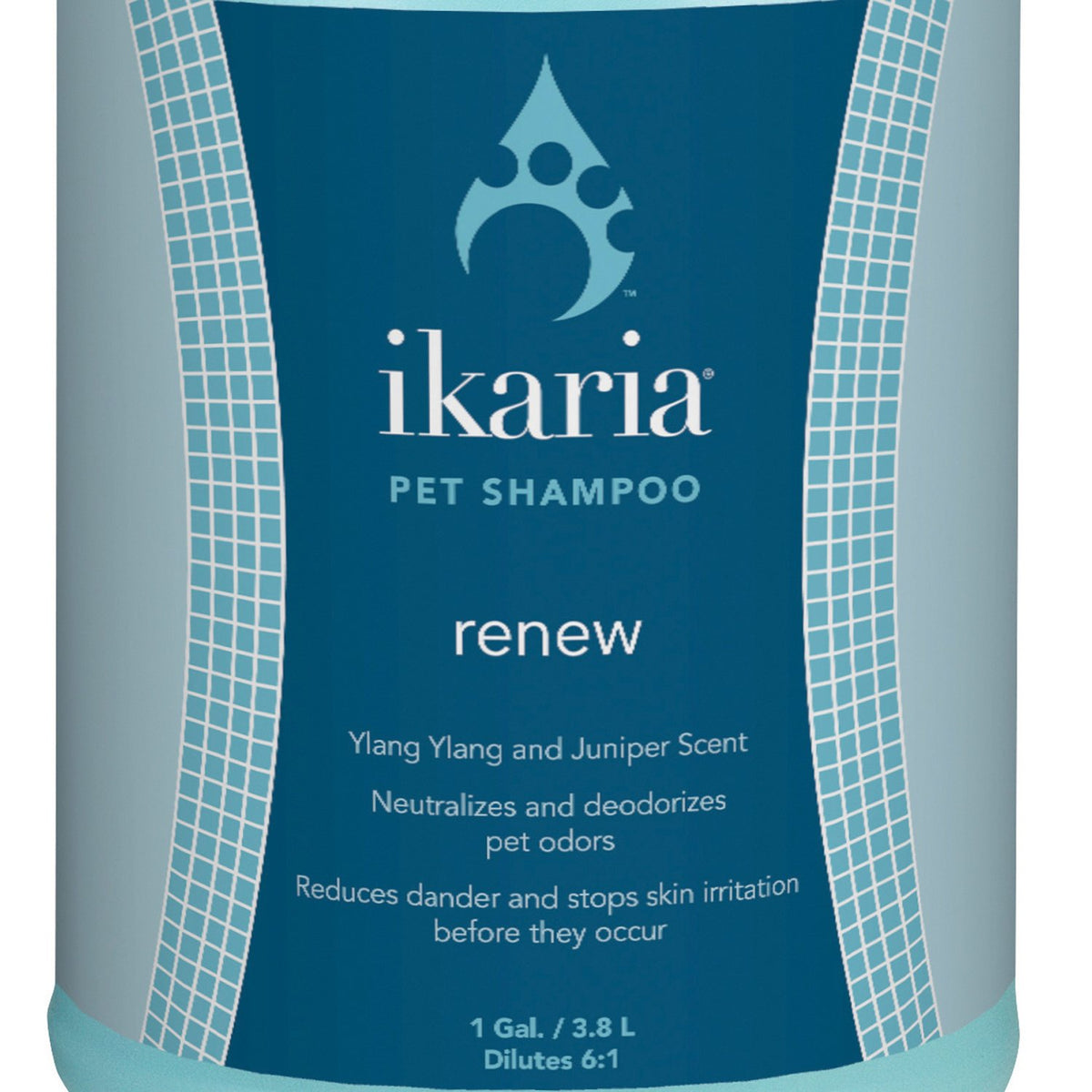 Q: What are the different types of Ikaria Pet Shampoo available?A: Ikaria offers several types of shampoos including Refresh, Retreat, Comfort Oatmeal, Renew, and Enlighten, each catering to specific grooming needs such as odor neutralization and coat brightening.