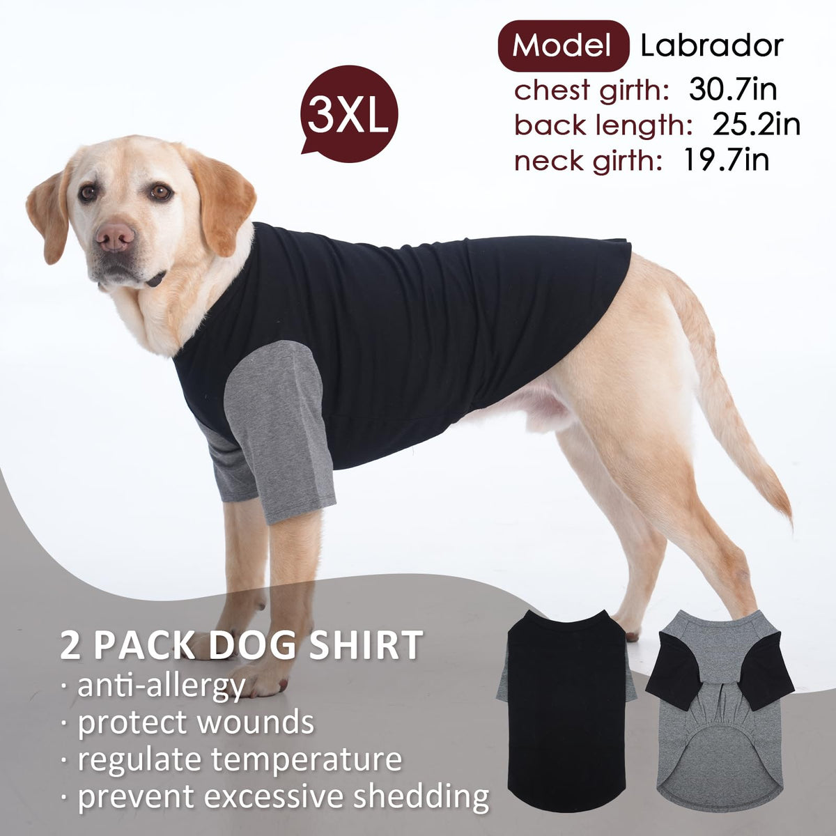 Ikipuko 2 Pack Dog Shirt For Large Dogs Xxl - Soft Breathable Cotton Tees, Freedom Of Movement Prevents Overheating Clothes For
