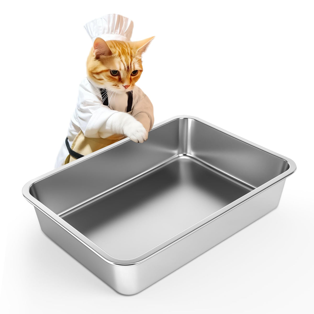 Ikitchen Stainless Steel Cat Litter Tray, Small Low Entry Open Metal Litter Pan, Litter Basin For Kittens, Newborn Cats, Litter Tray For Rabbits, Ferrets Hamsters 17.5''L X 13.5''W X 4''H Made Of Durable Stainless Steel, Rustproof, Stain Free, Odor Free, Shockproof, Use For Much Longer Time Than Plastic One. Litter Box With Hide Sides That Prevent Cats From Spreading Litter Out On The Floor. 4 Rubber Padded Bottom That Protect Your Floor From Scratches. The Stainless Steel Litter Pan Is Perfect For Cats, Rabbits, Hamsters And Other Small Pets. Non-Stick Smooth Surface, Easy To Clean And Wipe. Rounded Corner, No Sharp Edges Design That Makes The Cat Litter Box Safe And Comfortable To Hold, Safe For You And Cats Both. Why Choose Us? Material: Durable Stainless Steel Large Size: 17.5''Length X 13.5''Width X 4''Height(45X35X10Cm) Non-Stick Smooth Surface, Stain Free Cleanup Is Super Easy, Dishwasher Safe Rustproof, Scratchproof, 4 Padded Rubber Bottom Safety And Long Lasting
