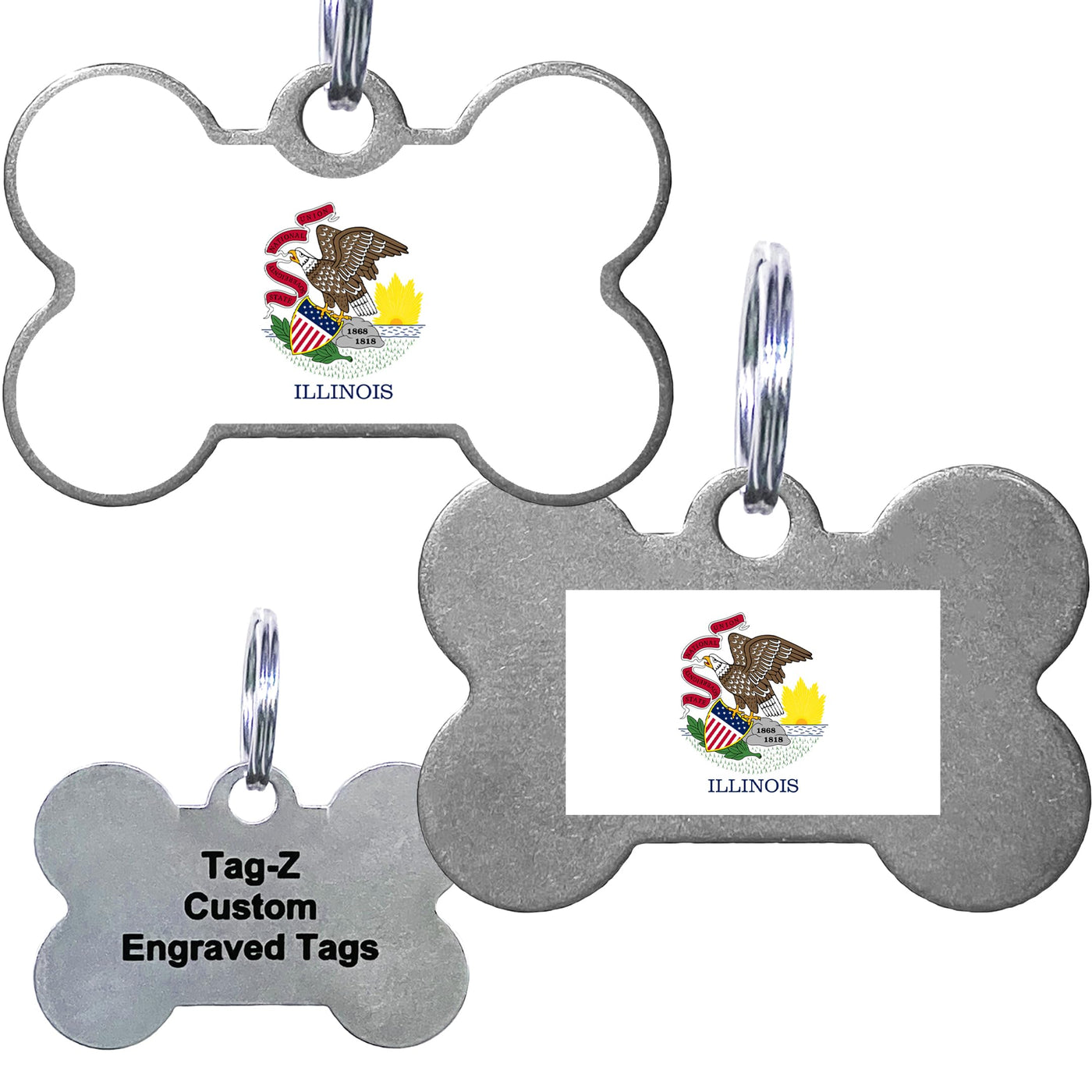 Our Tag Designs Are Printed Right Here In Our Shop With A Full Color Uv Printer. The Personal Information You Send On Your Order Is Laser Engraved On The Back With Our Metal Engraving Laser. Laser Engraving Is Permanent And Waterproof. Our Pet Tags Is Made With Genuine T304 Stainless Steel. The Bone Tag Is 1.5 Wide By 1 Tall And Is 1 Mm Thick. The Circle Tag Is 1.25 Side By 1.5 Tall And Is 1Mm Thick. Customization Specification Are As Follows; 3 Lines Available For Your Information And 15 Spaces On Each Line. The Text Is Centered On The Tag And The Size Of The Text Is Adjusted To Fit The Area. So, If You Have Less Text The Text Will Be Bigger In Size Then If You Have A Lot Of Text. Our Pet Tag Comes With A Hard Silicone Pet Tag Silencer Made Just For Our Tags To Help Protect The Tag From Dings And Scratches And A Stainless-Steel Split Ring So You Can Attach It To The Pet Collar. About Us: We Take Pride In Crafting High-Quality Pet Tags For Our Customers, Right Here In The Usa. Based In Nebraska, Our Small Business Is Dedicated To Creating Tags That Meet Your Expectations And Exceed Them. Each Order Is Valued Greatly, And We Strive To Ensure Your Satisfaction With Our Handcrafted Pet Tags. If You Have Any Issue With Your Tag, Please Reach Out To Us And We Will Do Our Best To Help! Our Contact Information Is Included With Every Order Or You Can Message Us Through Amazon Messages. We Do Our Best To Respond In A Timely Manner But Know That Our Shop Is Not Open On The Weekends.