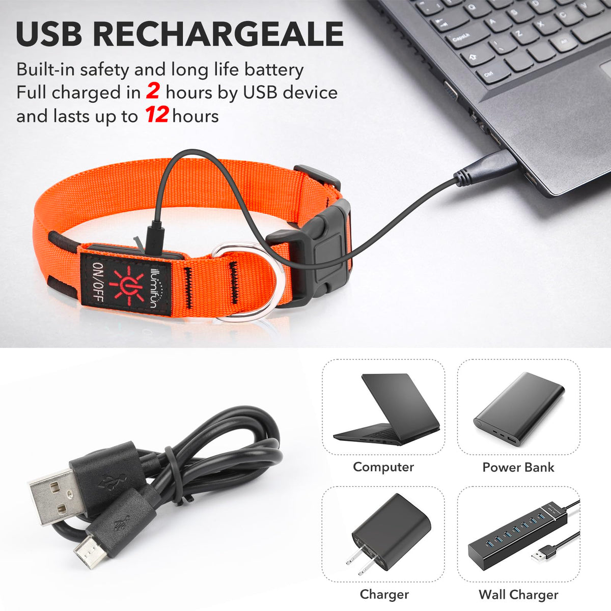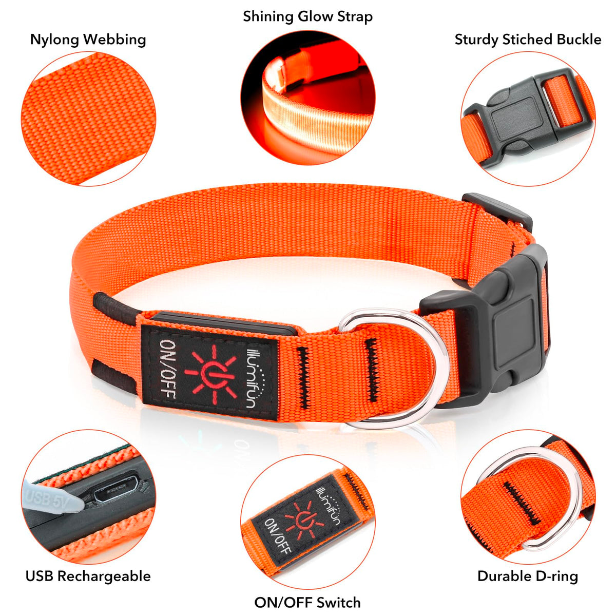 Are You Still Concerned That Your Dogs Might Go Missing Or Get Injured By Vehicles While You'Re Walking Them At Night?Light Up Their Safety With Our 'Illumifun Led Dog Collar.' When Your Furry Friend Wears This Lighted Collar, They'Ll Shine Brightly From A Distance, Helping To Avert Potential Hazards. Stay Visible & Stay Secure! Choose Trusted Quality - Choose Illumifun!Features & Functions:?Our Led Dog Collar Made Of Nylon Fabric And High Quality Flat Optical Fibers, Providing Super-Bright Illumination That Can Be Seen From Up To 400Meters Away.?Three Sizes Available: Small, Medium, Large. To Ensure The Best Fit For Your Dog, Simply Measure Their Neck And Select The Appropriate Size.?3 Fash Modes: Quick Flah, Slow Flash And Steady Glowing. Our Usb Rechargeable Led Dog Collar Features A 140Mah Battery That Can Be Fully Charged In Just 2 Hours And Lasts For 8 Hours Of Quick Flash, 12 Hours Of Slow Flash, Or 6 Hours Of Steady Glow.?This Luminous Dog Collar Is Water-Resistant, So You Don'T Need To Worry About Rainy Or Snowy Days Affecting Its Performance.?The Metal D-Ring Is Highly Durable And Rust-Resistant, Making It Perfect For Use With Our Led Dog Leash. ?Collar Width: 1Inch ? Collar Length ( Can Be Adjusted By Pulling The Led Fibers Through The Adjustable Buckle): X-Small: 8.5 - 11.8 Inch Small: 11.8 - 15.7 Inch Medium: 15.0 - 19.7 Inch Large: 18.9 - 23.6 Inch Color: Green& Red& Orange& Blue& Pink Package Including 1 Illumifun Led Dog Collar 1 Micro Usb Cable