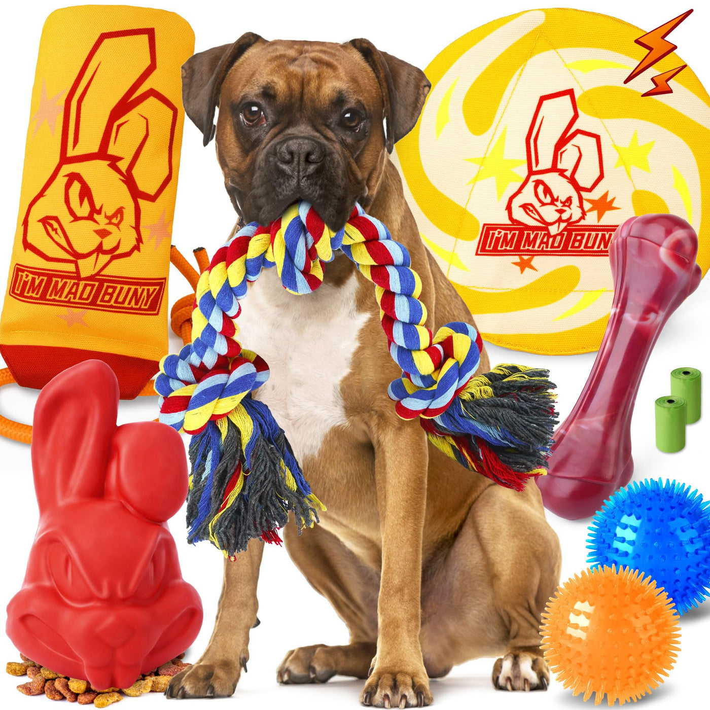 Immadbuny Heavy Duty Various Dog Chew Toys For Aggressive Chewers, 9 Pack Indestructible Large Dog Toys Include Tug Chew & Rope Toys, Squeaky Toys For Medium Large Breed Dogs(For Regular Chewers)