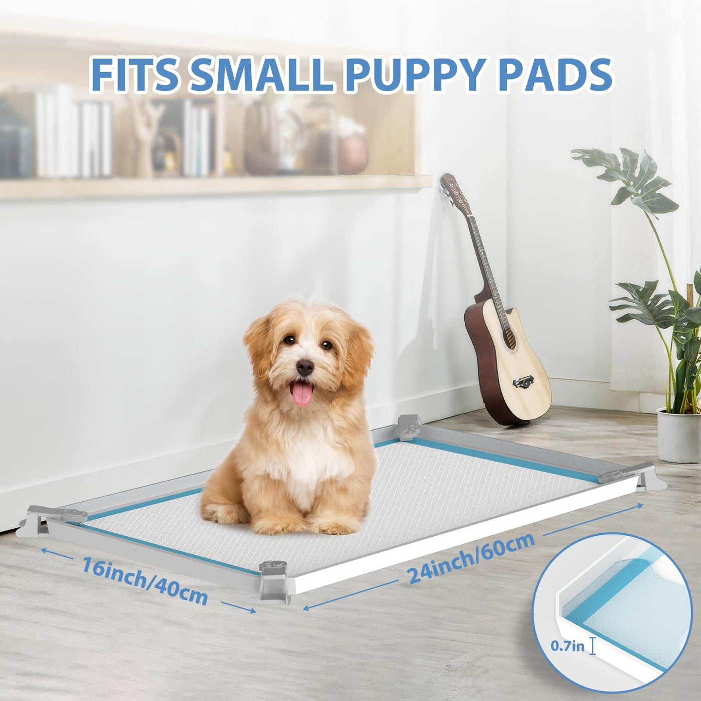 Immcute Pee Pad Holder, Soft Silicone Puppy Pad Holder Fits Up To 16' X 24' Pee Pads, Non-Slip High Edge Potty Pad Holder, Dog