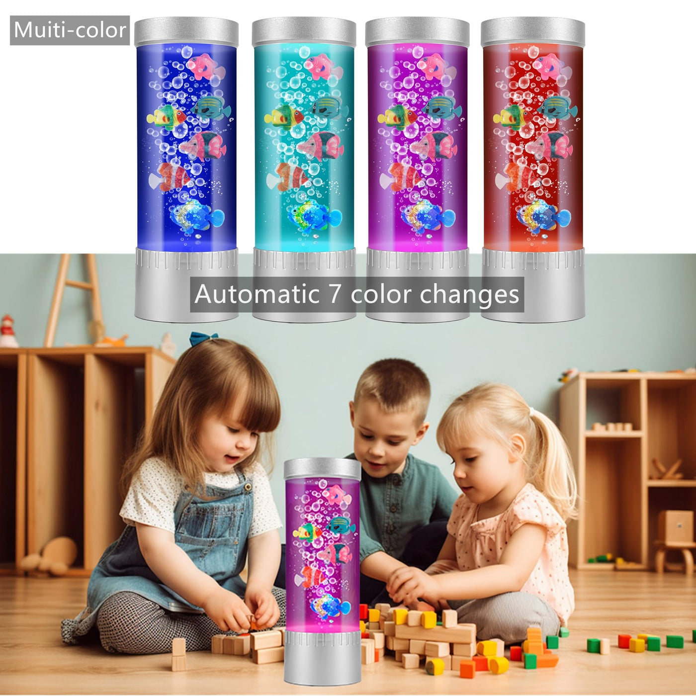Q: Can the Bubble Fish Lamp be used in children's rooms?A: Yes, the Bubble Fish Lamp is an ideal decorative piece for kids' rooms, providing both entertainment with its moving fish and a calming sensory experience.
