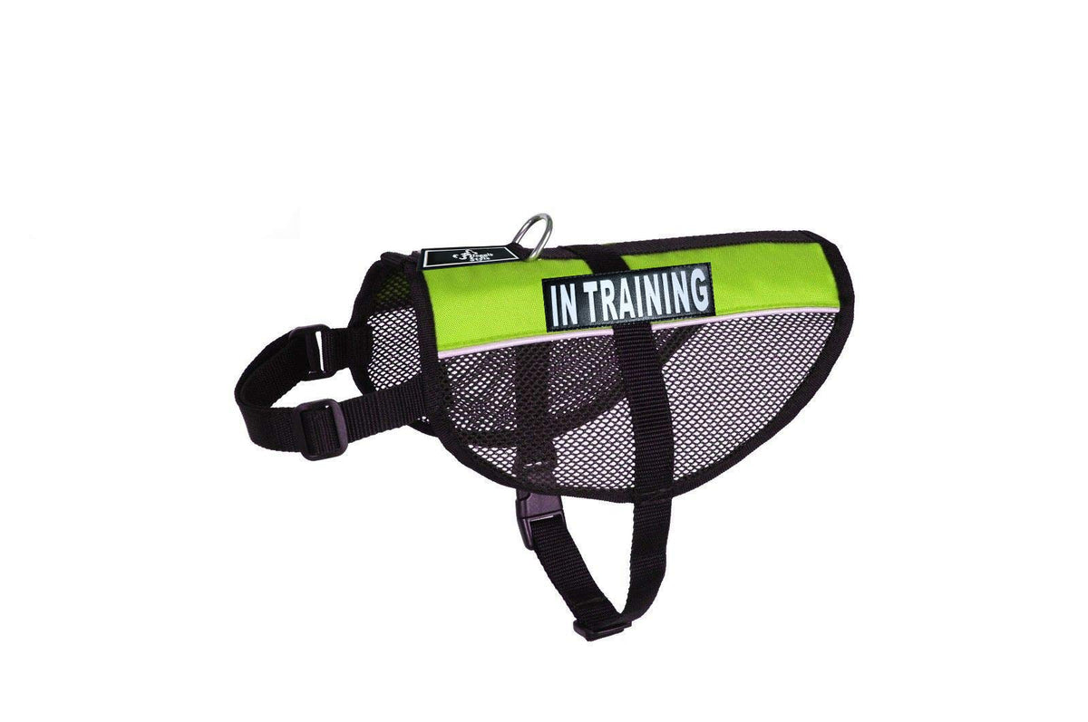 Q: What sizes does the in Training Service Dog mesh Vest Harness come in?A: The in Training Service Dog mesh Vest Harness is available for dogs with a girth measurement between 21-24 inches, making it suitable for small to medium-sized dogs.
