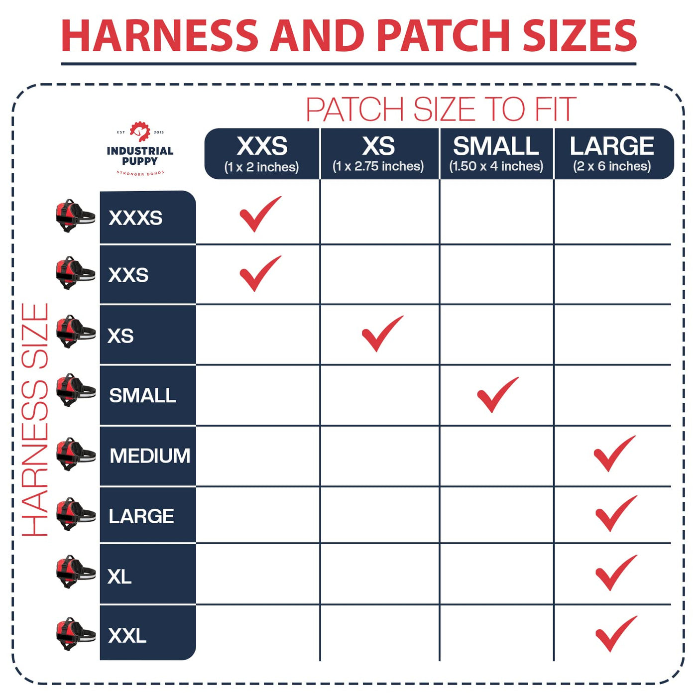 Industrial Puppy Service Dog Patches are available in five designs: EMOTIONAL SUPPORT, IN TRAINING, SERVICE DOG, SERVICE DOG IN TRAINING and THERAPY DOG. Each service dog patch is constructed from durable polyester and has a Hook back. It can be attached to any type of service dog vest that has a Loop strip, or sewn on to vests if there is no Loop attachment available. These patches make it easy to update your dog’s status and helps you save money by allowing you to use a single vest for multiple dogs.