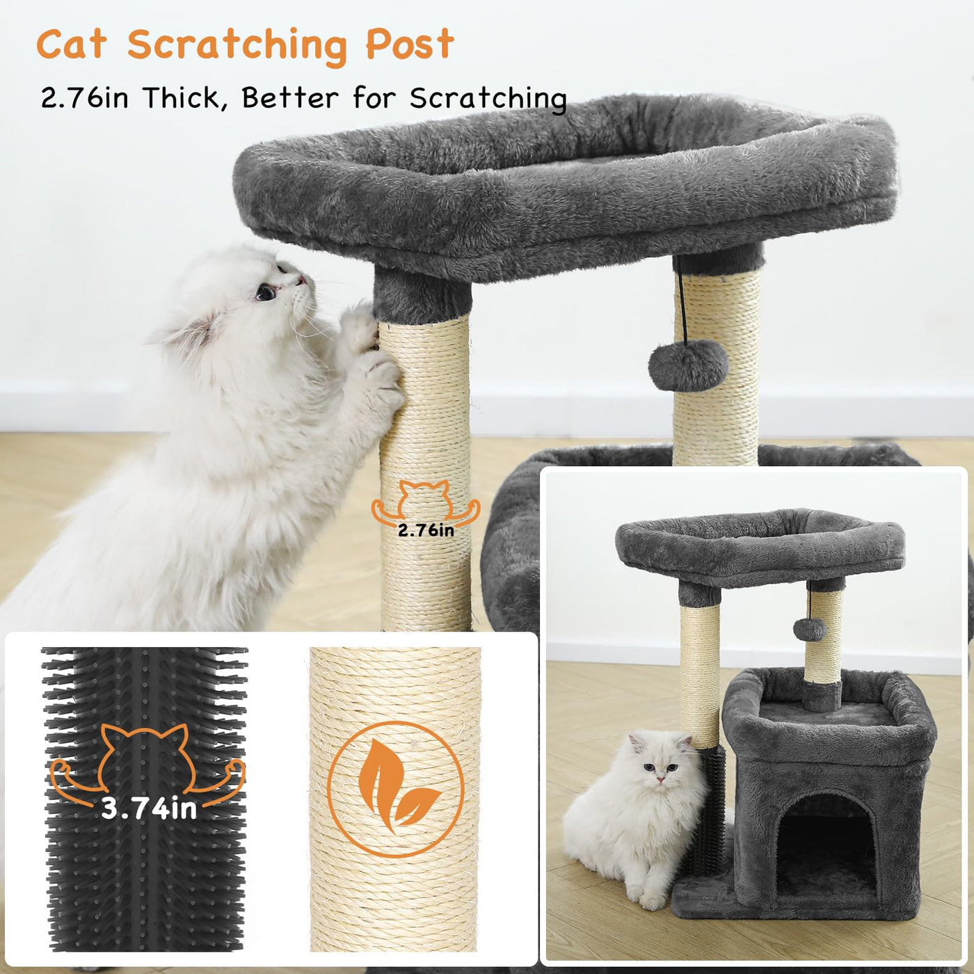 Innsfurr Small Cat Tree For Indoor Cats, Cat Tower With Scratching Posts For Multiple Cats, Plush Cozy Perch, Cat Massage Brush,