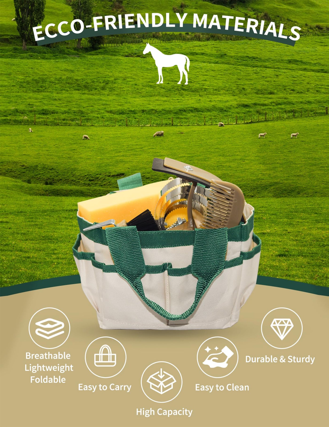 Inoreal Complete 9 Piece Horse Grooming Kit With Tote Bag, Horse Brush Set For Effective Grooming And Bathing, Professional Equi