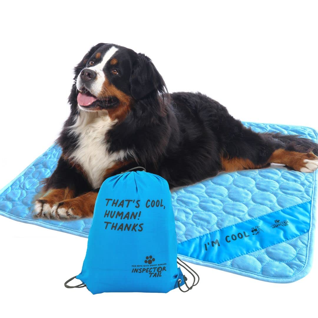 Inspector Tail Cooling Mat Extra-Large Is A Great Way For Your Pet To Combat Summer Heat At Home Or When Travelling. The Extra Large Cooling Dog Bed Is Specially Designed To Allow Air Circulation Lowering Your Pet Body Temperature And Also Preventing Overheating. Cool Pet Pad Self Cooling Pet Pad Has Dual Layers To Provide Comfort To Your Pet. There Is No Need To Use Electricity Or The Freezer For Our Ice Silk Cooling Pad For Dogs. Put The Travel Cooling Mat For Dogs In A Shaded Area When Using It Outside.The Summer Dog Cooling Mat Will Stay Colder Longer When Its In An Air-Conditioned Room. Hard Flooring Or Carpet Keep The Heat Around The Pet Body Making Difficult To Cold It Down. Our Dog Cooling Pad Is A Good Option For Dogs Who Loves To Chew Because Is Free Of Toxic Elements Like Gel, Glues Or Crystals. Xl Dog Cooling Mat & Cat Cooling Mat Can Be Simply Put Wherever You Choose. The Cooling Towel Is Versatile So, You Can Use The Pet Mat To Protect The Couch, Bed, Carpet Or Car Seat From Hair, Dirt And Stains, While Offering A Chill, Comfortable Surface For Your Pet. Our Self Cooling Dog Mat Is Highly Portable. The Animal Cooling Pad Is Easy, So It Can Be Easily Folded And Packed In The String Bag. Because Our Doggy Cooling Mat Is Lightweight, It Is Ideal For Car Trips, A Day Out On Your Patio Or Even At The Beach. Our Cooling Blanket For Dogs Is Mess Free, Not Like Other Cooling Mat For Small Dogs. Cooling Mat For Dogs Inspector Tail Can Be Thrown In The Washing Machine And Our Cooling Mattress Pad For Dogs Resists Even After Multiple Washes. Inspector Tail Medium Size Dog Cooling Pad Car Seat Is Durable And Will Last A Long Time, So You Wont Have To Replace The Washable Cooling Mats For Pets. Because We Know That Dogs Comes In Different Sizes, Our Canine Cooling Mat Comes In 3 Sizes & Cool Mat Dog Crate Is Rectangular. The Inspector Tail Cooling Pad For Dogs Indoor Can Be Easily Used As Dog Cooling Pad For Sleeping.