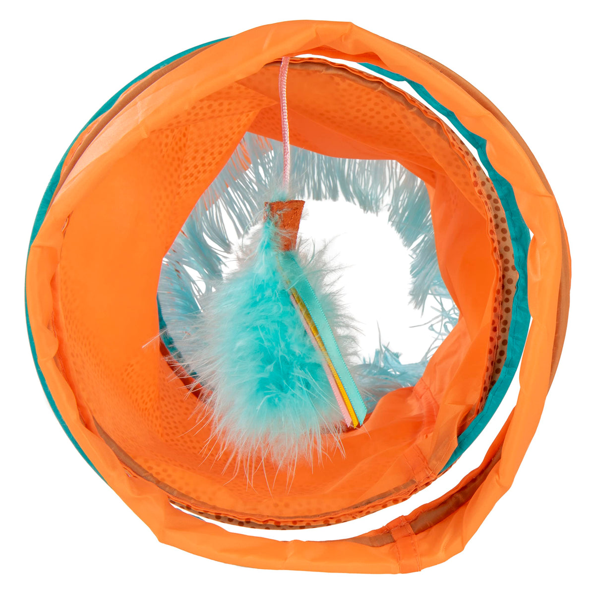 Instincts By Smartykat Teaser Tunnel Activity Tunnel Cat Toy W/Fringe & Feather Teaser Cat Toy - Orange, One Size