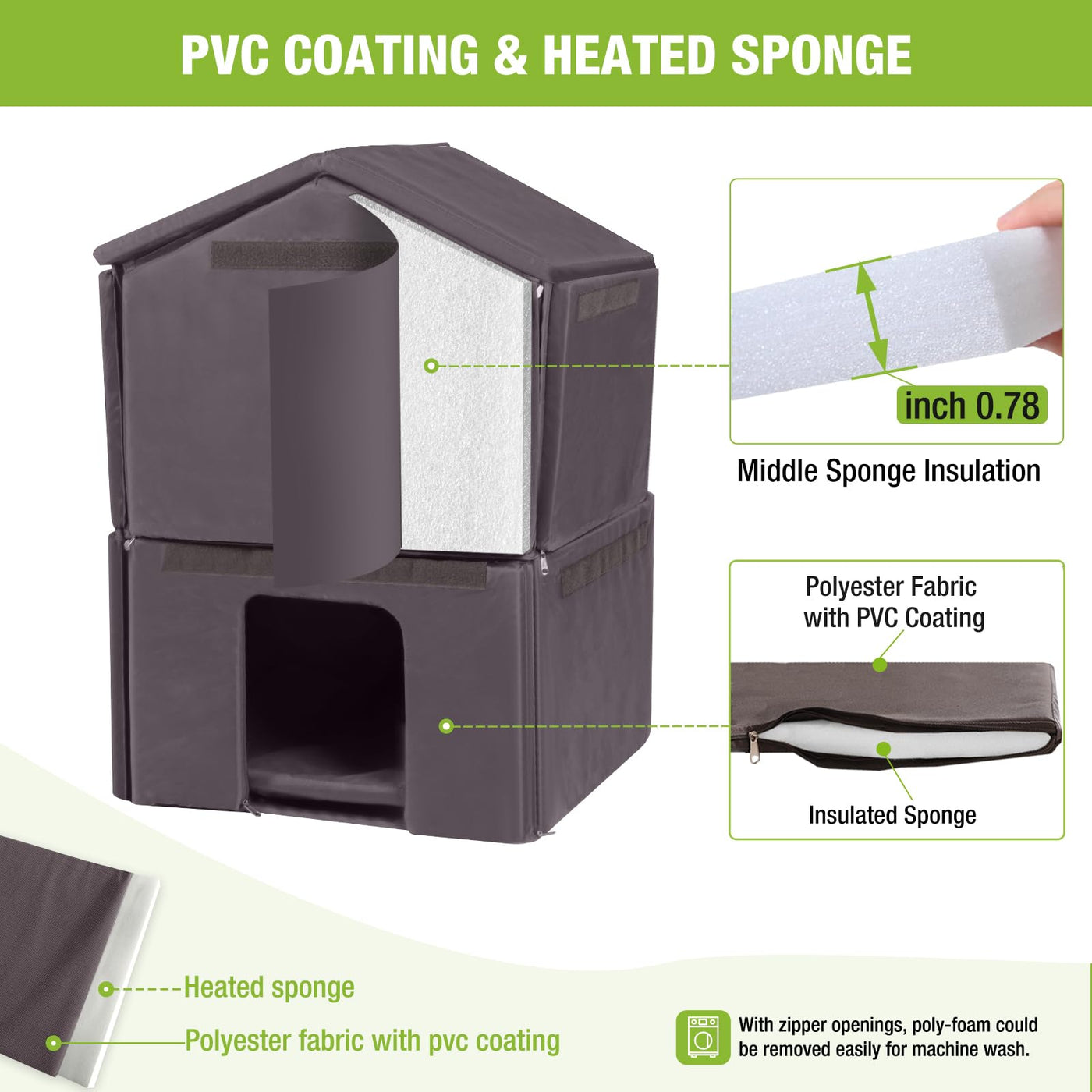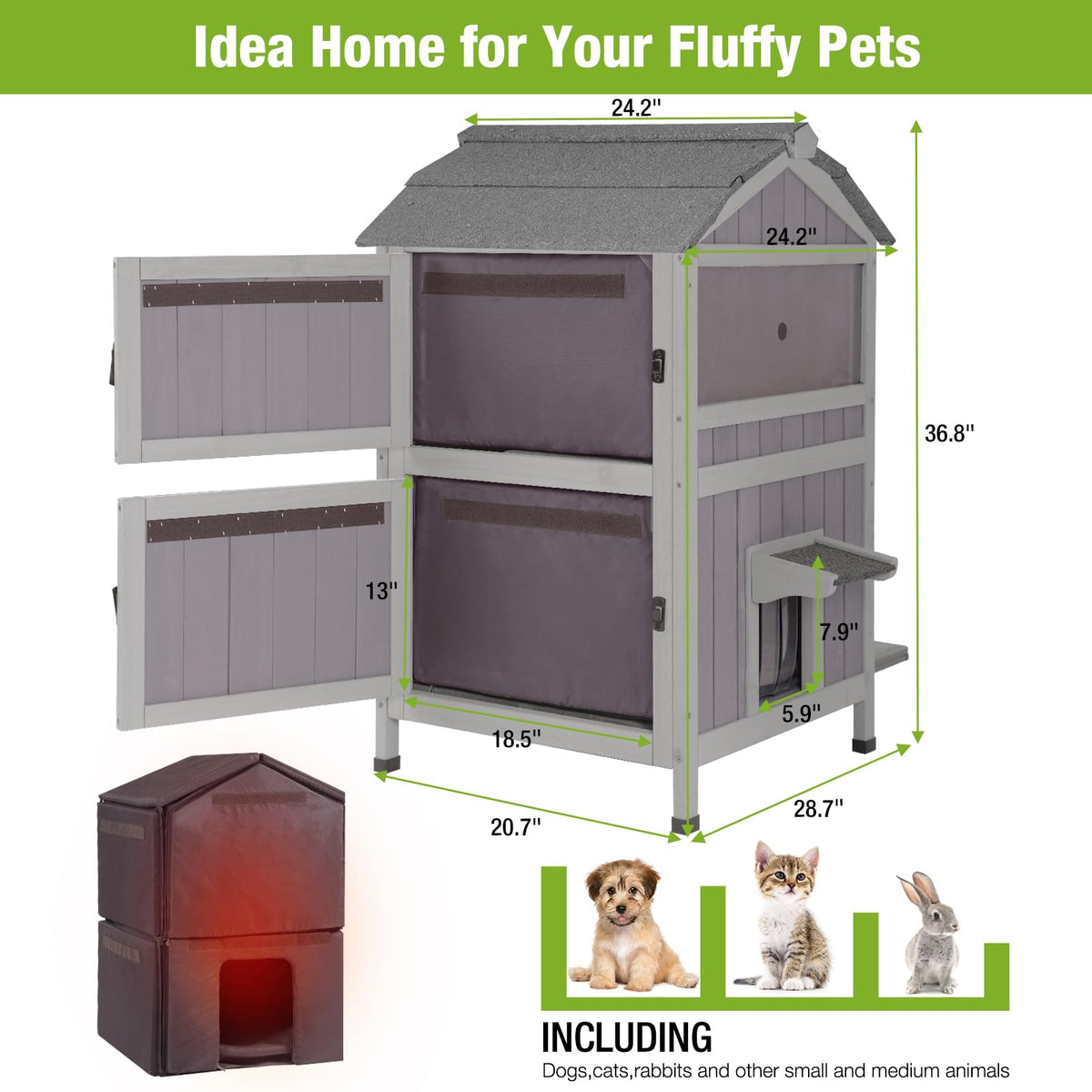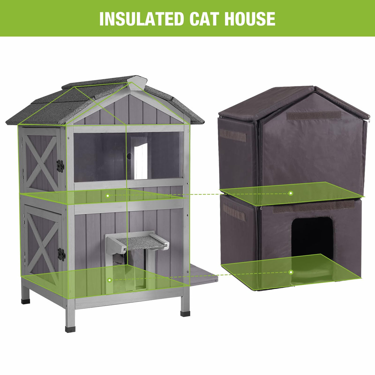 Insulated Cat House For Outdoor Cats Waterproof Feral Kitty Shelter For Winter,Insulation Liner Include