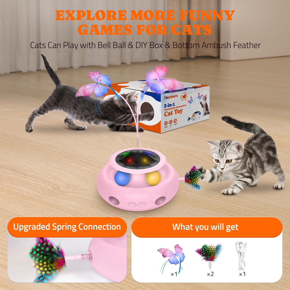 Interactive Cat Toy: 3 In 1 Automatic Cat Toy For Indoor Cats, Electric Kitten Toy With Rechargeable Battery, Self Play Kitty To