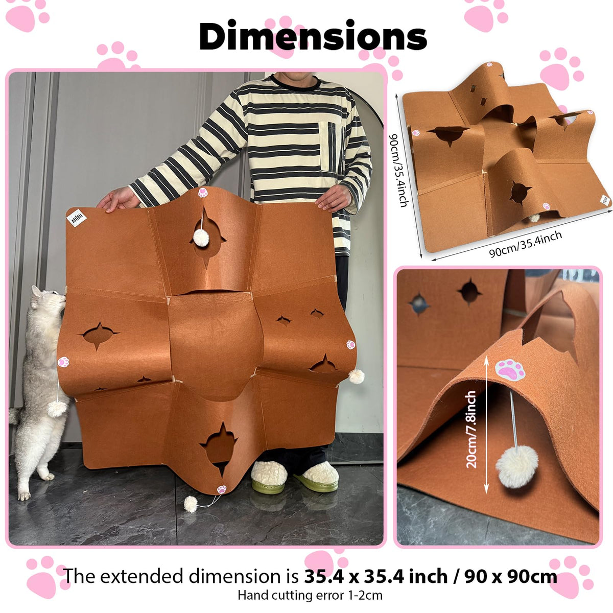 Multi-Functional Cat Tunnel Mat - Play, Rest &Amp; Hideout In One!Give Your Furry Friends The Ultimate Playground With Our&Nbsp;4-Way Felt Cat Tunnel Mat. Crafted From Thick, Tear-Resistant Felt, This Modular Mat Offers&Nbsp;Four Colorful Tunnel Houses -Each With Peek-Through Holes And Soft Textures Pets Love. Whether You Have Kittens, Cats, Bunnies, Or Small Dogs, This Mat Provides Interactive Fun, Mental Stimulation, And A Cozy Place To Nap. Key Benefits: Durable Felt Surface Resists Wear And Scratching Promotes Natural Instincts: Hiding, Hunting, And Pouncing Hanging Plush Ball Toy Stimulates Interactive Play Foldable And Lightweight For Easy Storage And Travel Ideal For Multi-Pet Households Or Single Curious Kitties Diy-Friendly Design:Want To Customize The Tunnels As Your Pets Grow? You Can Reshape The Tunnels Or Cut New Holes Using Sharp Scissors To Suit Your Cats' Play Styles. Built With Flexibility In Mind! Perfect For Indoor Cats&Nbsp;Looking For Stimulation And Activity. Also Great For Rabbits, Ferrets, Or Small Breed Dogs.