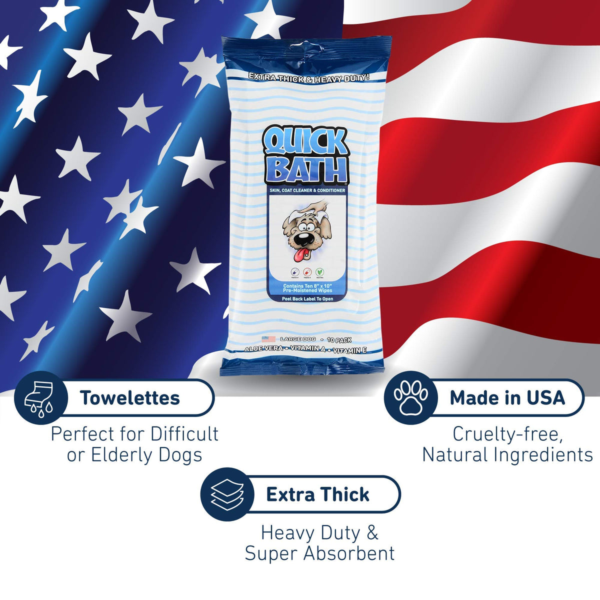 International Veterinary Sciences Ivs Quick Bath Dog Towelettes, Removes Odor, Extra Thick And Heavy Duty For Large Dogs, Made In The Usa, 10 Count Pack