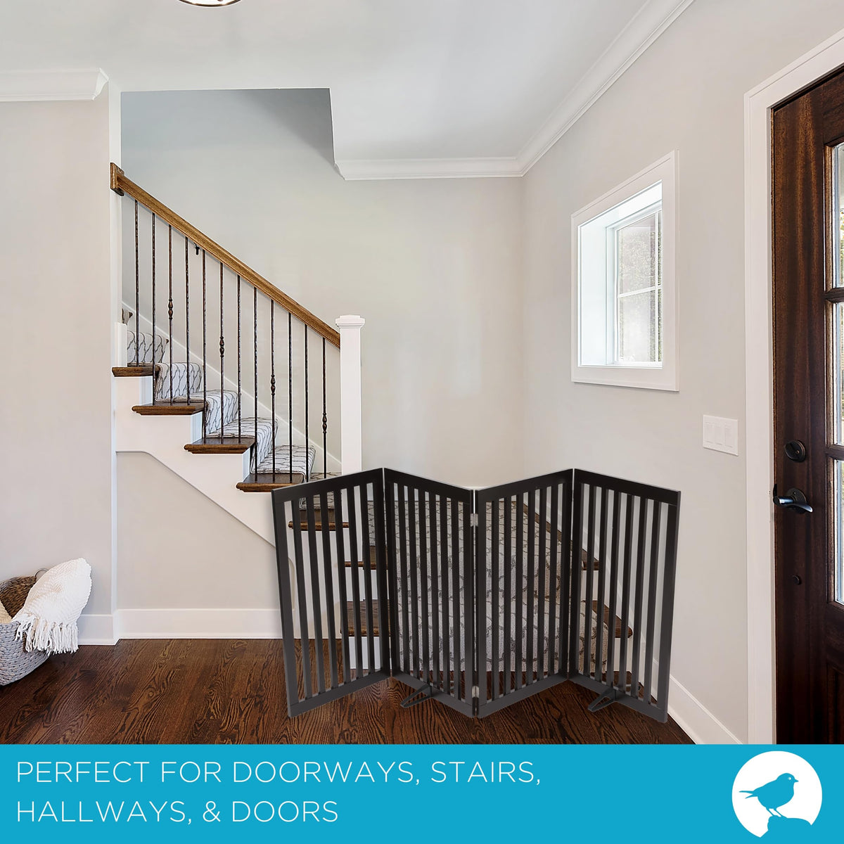 INTERNETS BEST Dog Gate with Support Feet, Indoor Freestanding Pet Barrier, Folding Wood Cat or Dog Fence, Extra Wide Doorway P