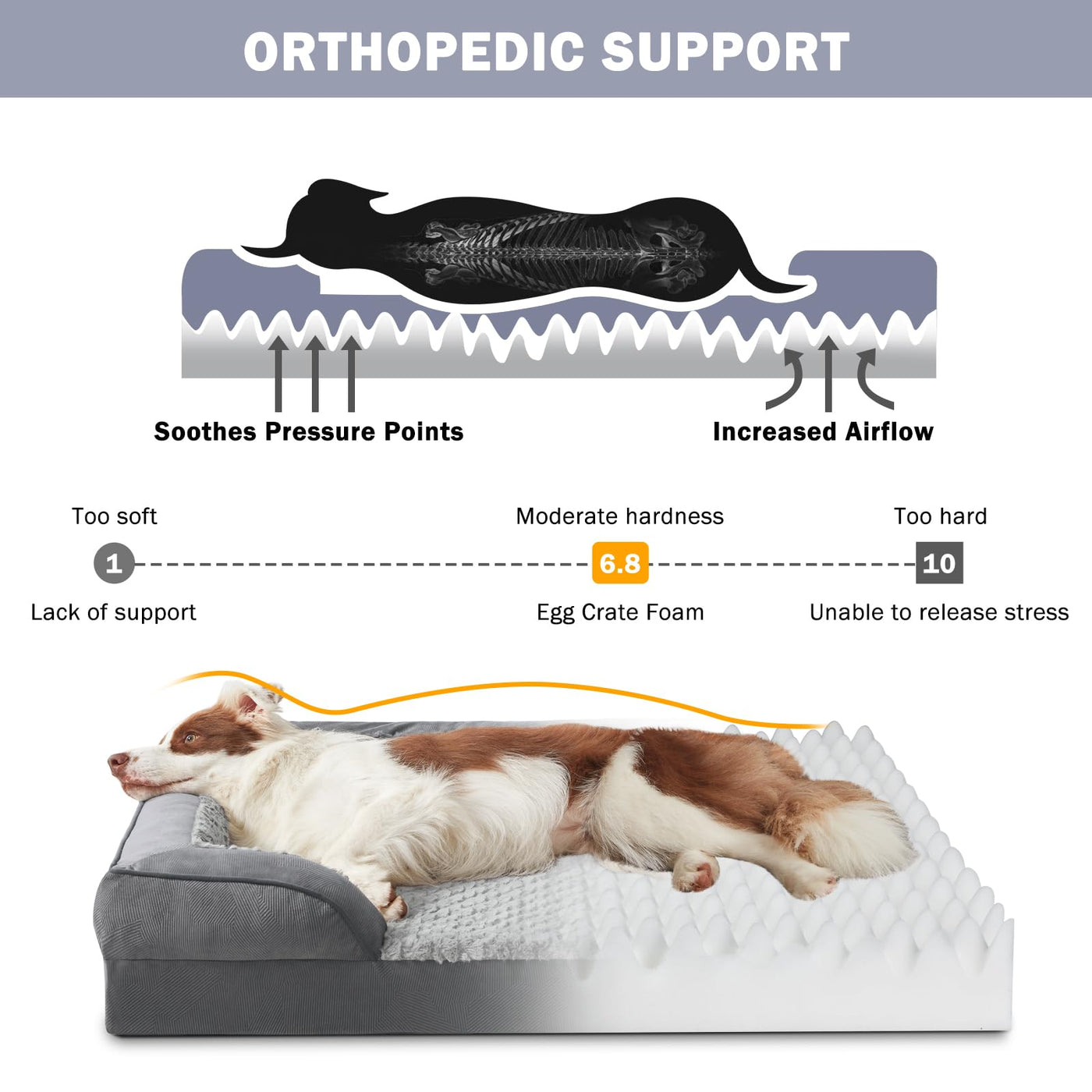 Invenho Orthopedic Medium Dog Beds For Medium Dogs, Waterproof Egg-Crate Foam Dog Couch Bed With Washable Removable Cover, Water