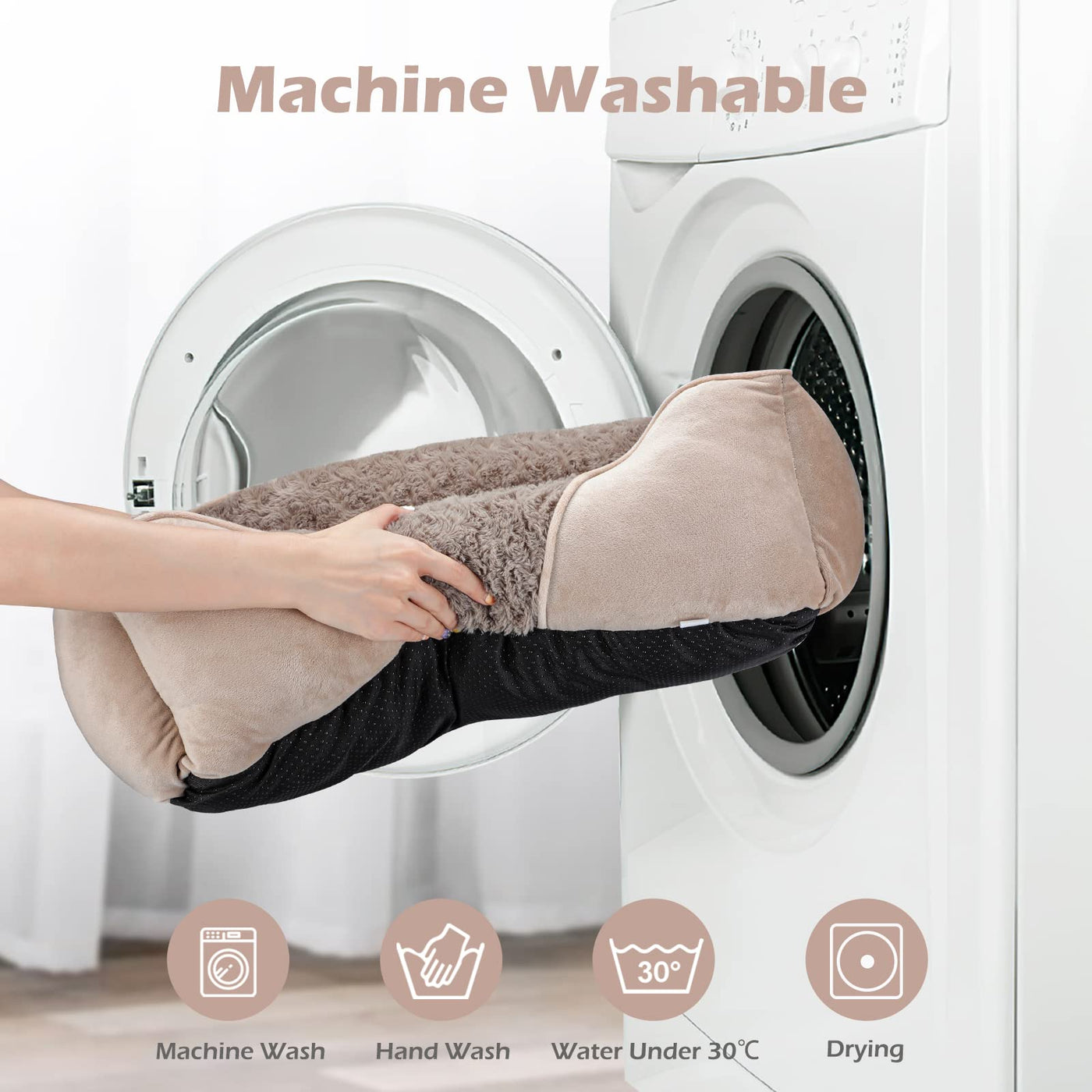 comfort & Security Edge: Raised four walls and pillow-like rectangular dog bed provide good support and cushion for the dogs head and neck the super-soft filling offers joint and muscle pain relief and allowing your puppy to have a comfortable and restful sleep Low leading-edge design is easy access for small and old dogs Ultra Soft Material: Pet bed is covered in rose swirl short faux fur and cozy suede fabric which is soft and warm during the winter and effectively retains your petAs body heat the bottom and sides stuffed with thickened and eco-friendly pp cotton to create a breathable and comfortable sleeping environment which keep your dog away from the floor the surface plush is warm and cozy In no time your pet will be snoozing away in the elevated comfort of this dog bed Size Details: Small dog bed for Small dogs up to 15lbs the outer size is 20x19x6 Medium dog bed for Medium dogs up to 30lbs the outer size is 25x21x8 Large dog bed for Large dogs up to 40lbs the outer size is 30x24x9 X-Large dog bed for Jumbo dogs up to 60lbs the outer size is 35x25x9 XXL dog bed for Large dogs up to 80lbs the outer size is 42x30x10 Please be sure to confirm the size Washable Dog Bed: Durable pet bed machine washable as a whole gentle cycle and thoroughly dried in dryer directly after washing and do not Air dry Please use your hands to pat shake the dog bed and wait for 1-2 days to wait it back to fluffy status before using Anti-Slip Bottom: This calming dog bed is equipped with non-slip bottom to keep the pet bed in position and keep your pets safe