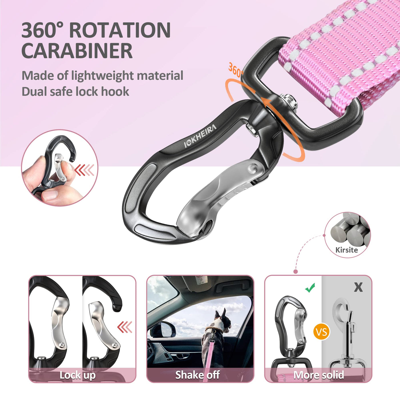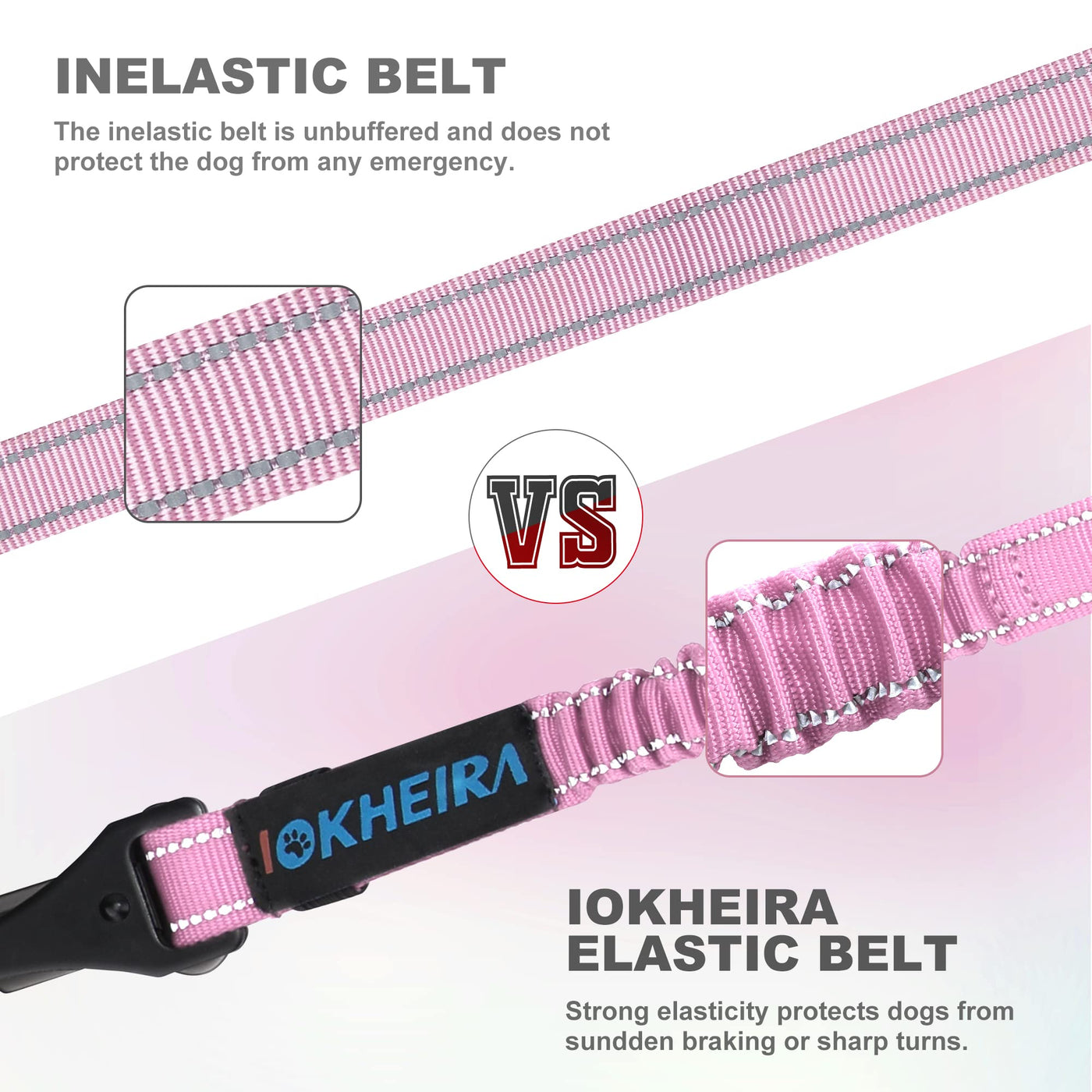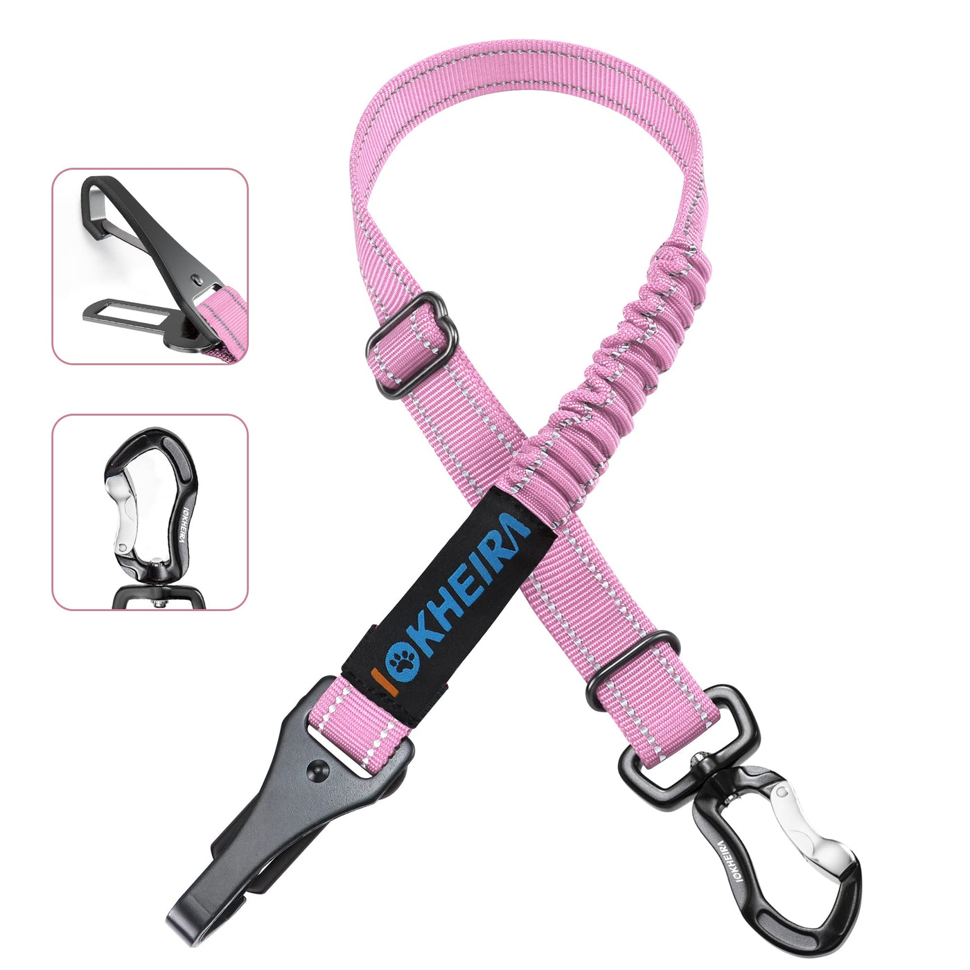Iokheira Dog Seatbelt - Adjustable Reflective Bungee Harness With Aluminum Swivel Carabiner