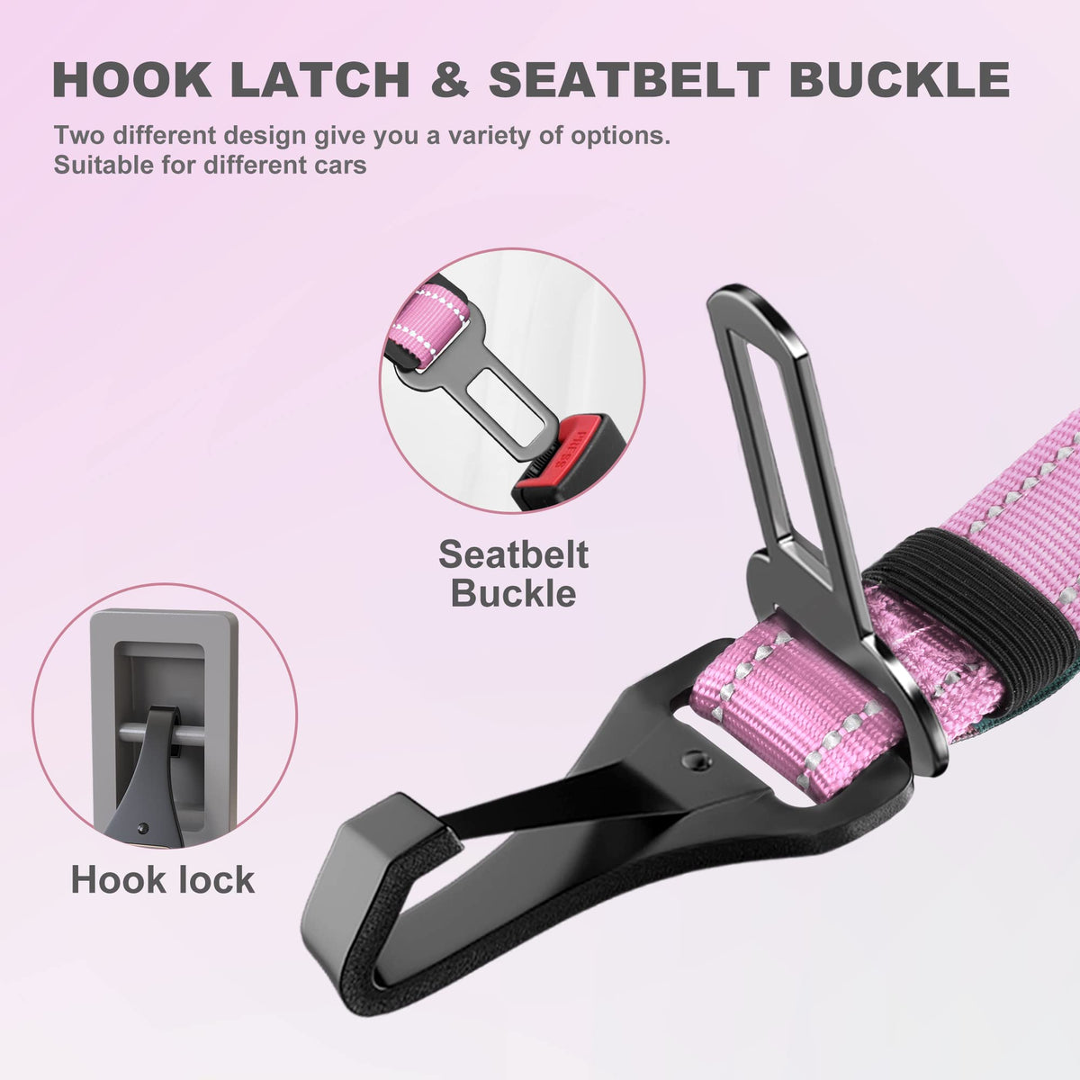 Dog Seatbelt For Large, Medium And Small Dogs,Multifunctional Pet Safety Belt Reflective Bungee Dog Car Harness With Hook Latch & Seatbelt Buckle, Swivel Aluminum Carabiner
