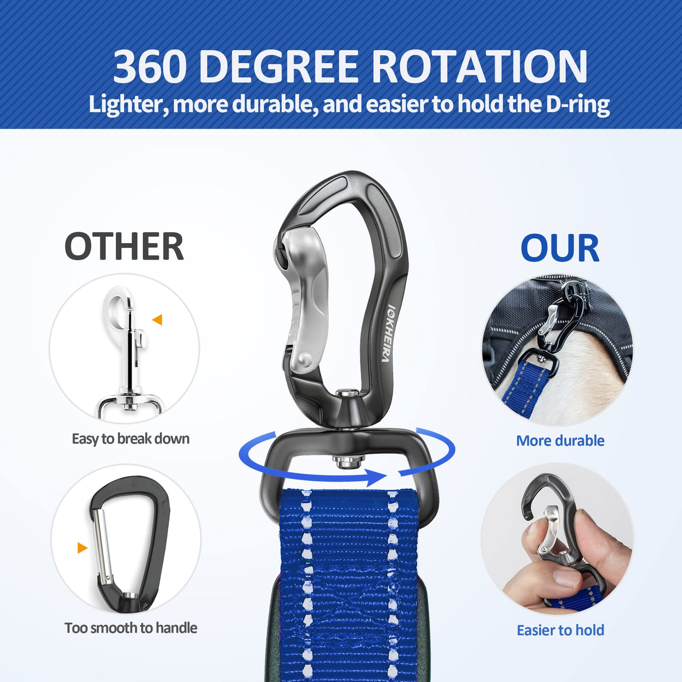 Iokheira Multifunctional Dog Leash For Large & Medium Dogs, Adjustable With Car Seatbelt, 4-6 Ft Strong Bungee (Blue)