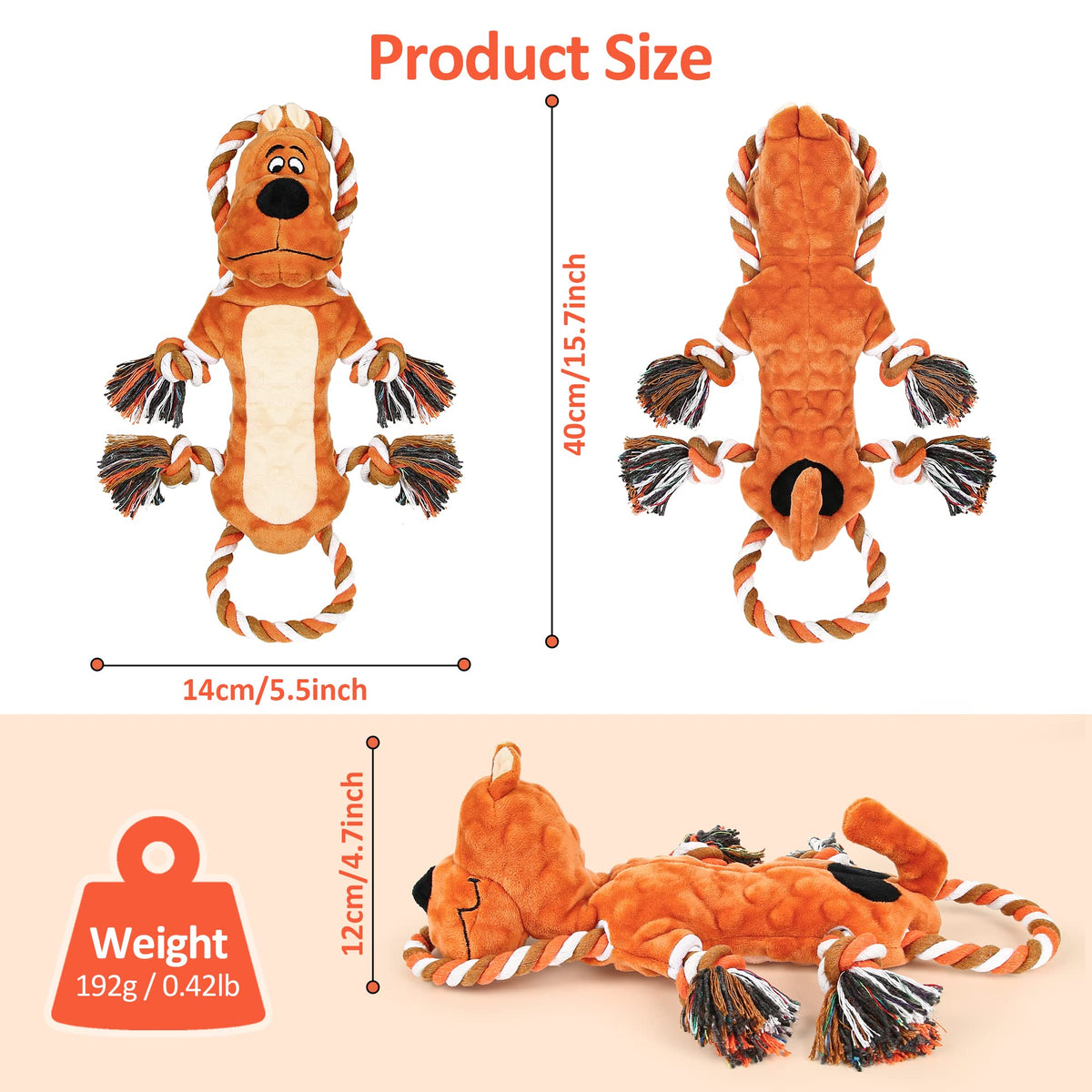 Iokheira Tug Of War Plush Dog Squeaky Toys With Crinkle Paper, Knotted Rope For Teeth Cleaning & Boredom