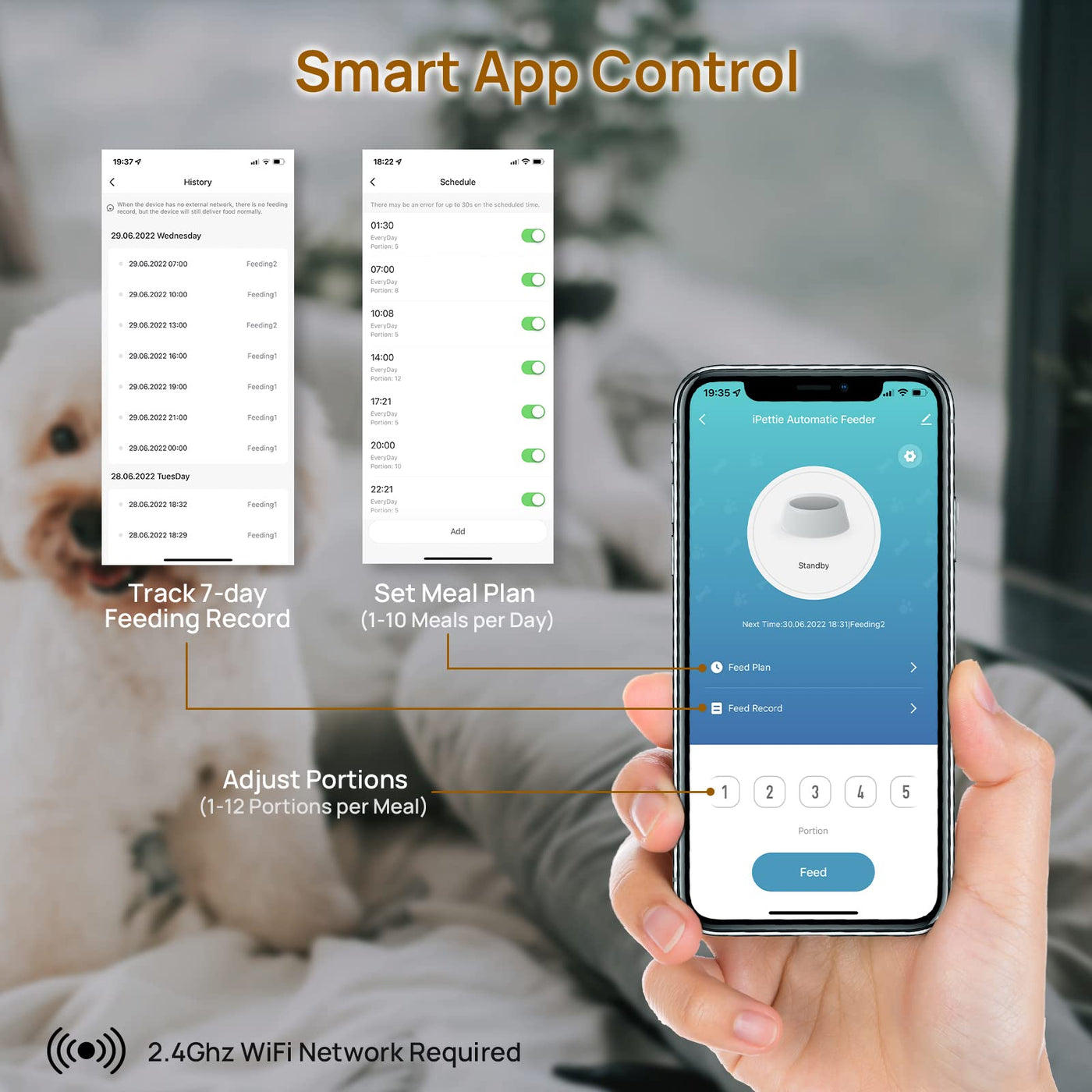 Ipettie Automatic Wifi Pet Feeder For 2 Pets, 5L/21 Cup Capacity, 1-10 Meals Per Day, Adjustable Bowl Height, Smart Dog Cat Feed